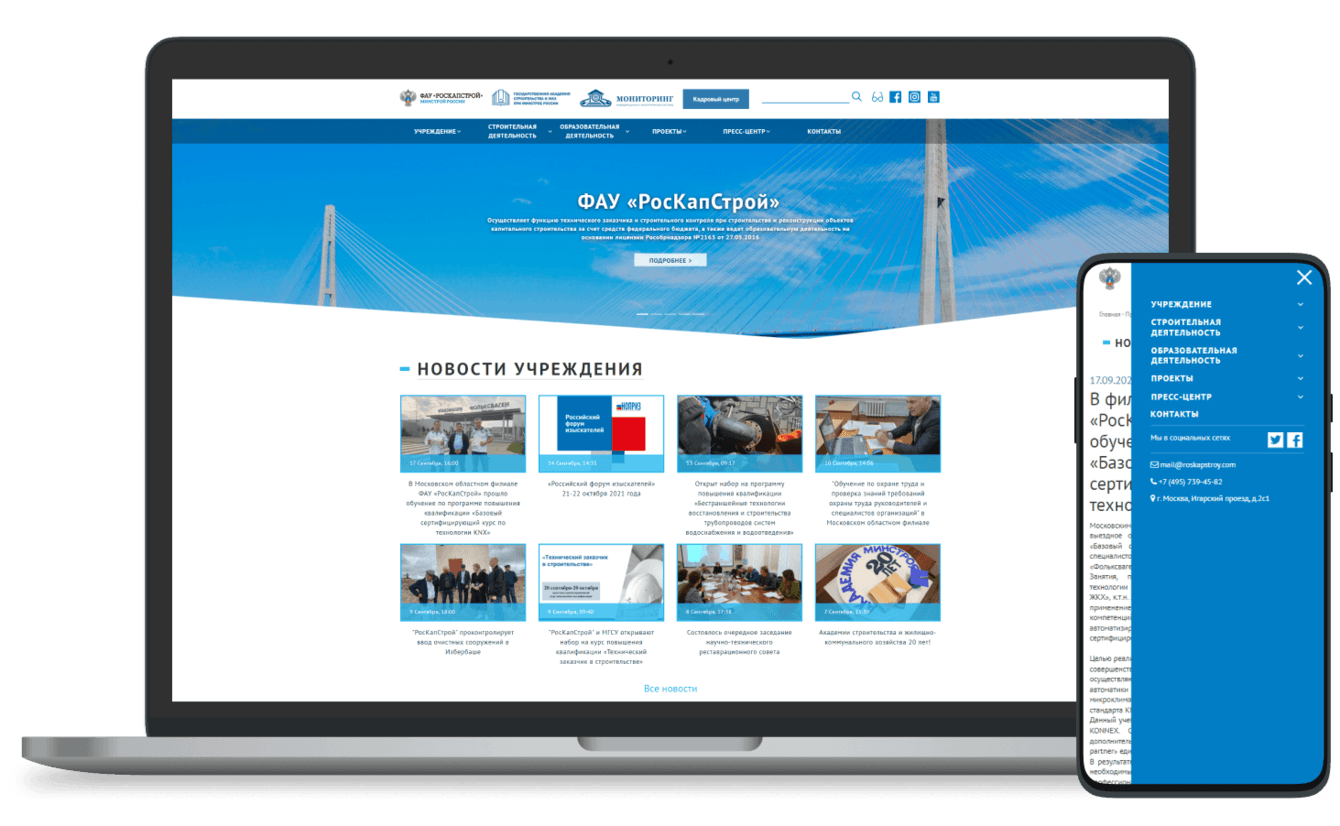 Федеральное автономное учреждение «РосКапСтрой» благодарит коллектив «FMF» за создание нашего сайта roskapstroy.ru. Хотелось бы отметить профессионализм ваших сотрудников, проявленный в ходе работ.