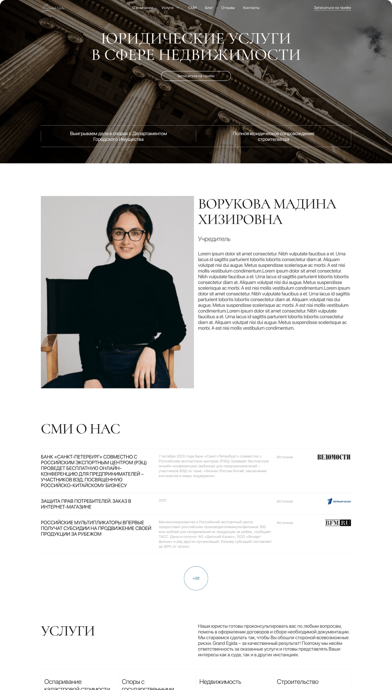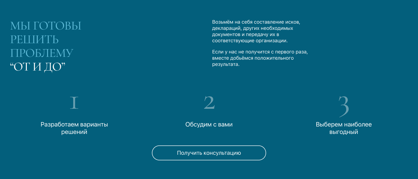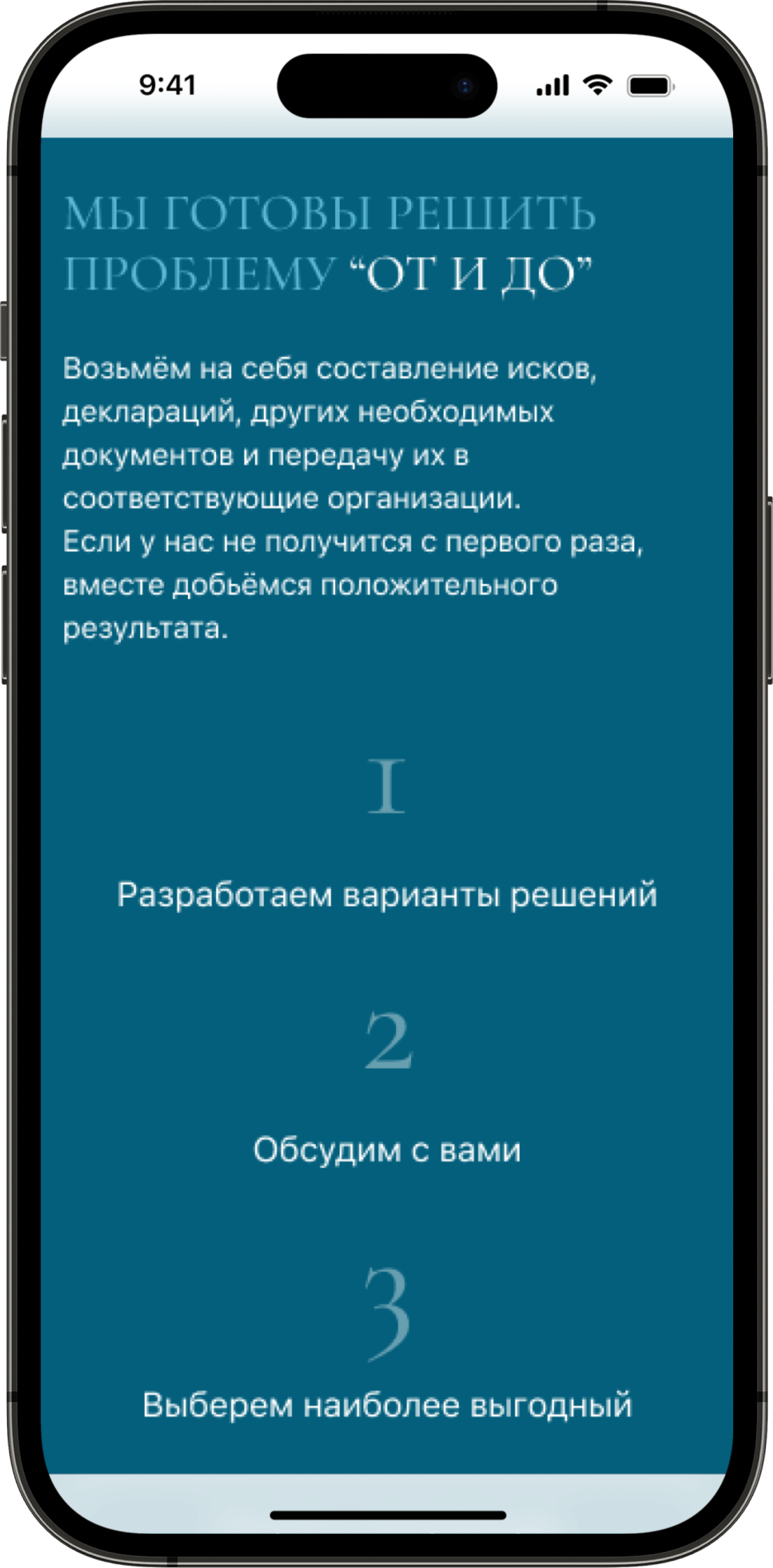 Разработать эффективный и простой сайт для юридического агентства, отражающий их специализацию в недвижимости, земельных и налоговых вопросах.