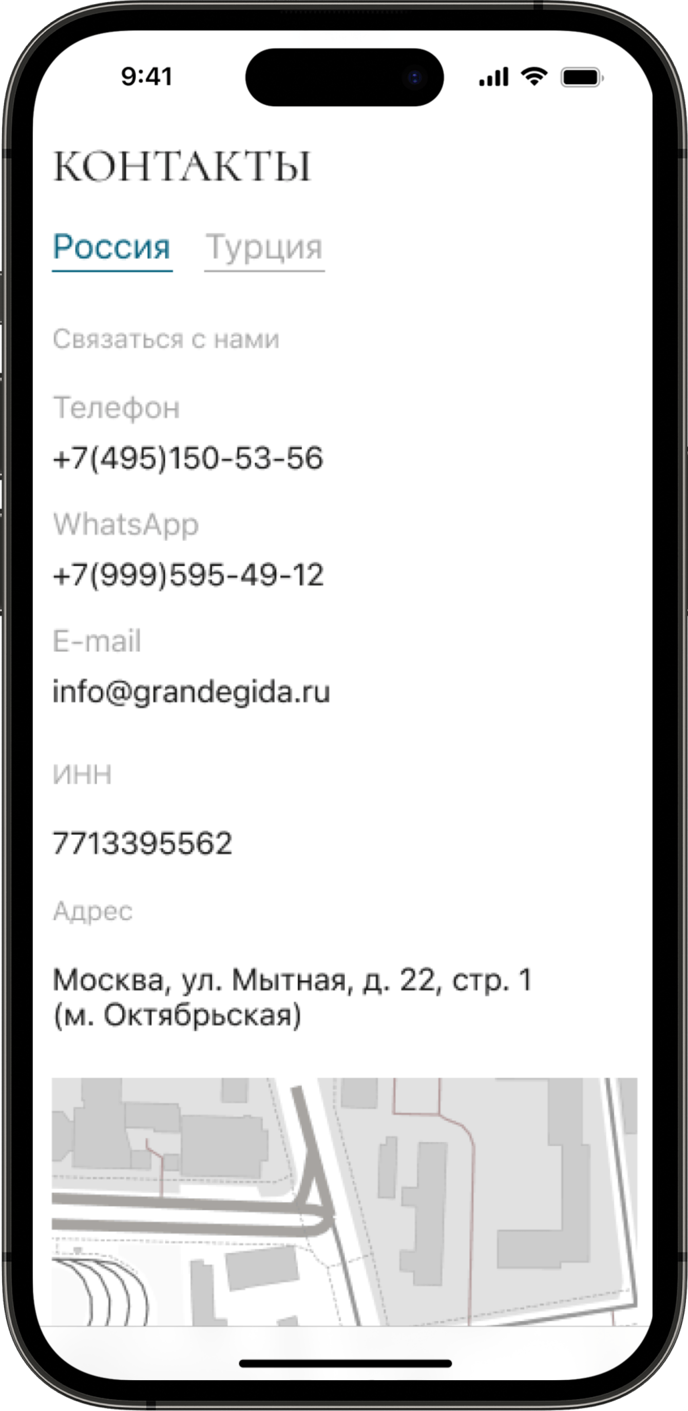 Разработка сайта началась с прототипирования и создания дизайна, ориентированного на корпоративный стиль Grand Egida. Дизайн был направлен на создание простого, но элегантного интерфейса, который бы отражал профессионализм и надежность компании.