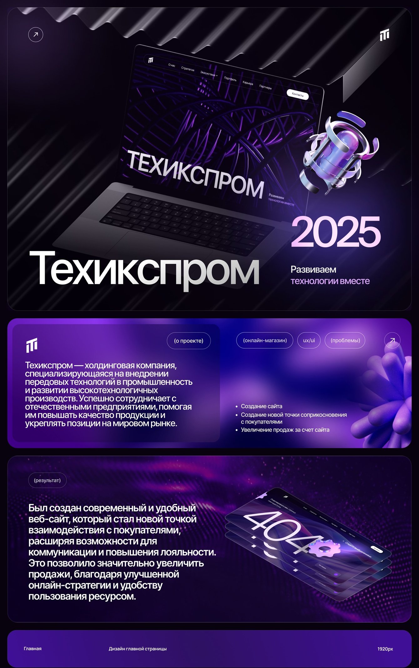 Создан современный и удобный веб-сайт, ставший новой платформой для взаимодействия с клиентами, расширяя возможности коммуникации и укрепляя лояльность. Это способствовало значительному росту продаж благодаря усовершенствованной онлайн-стратегии и удобству использования ресурса.