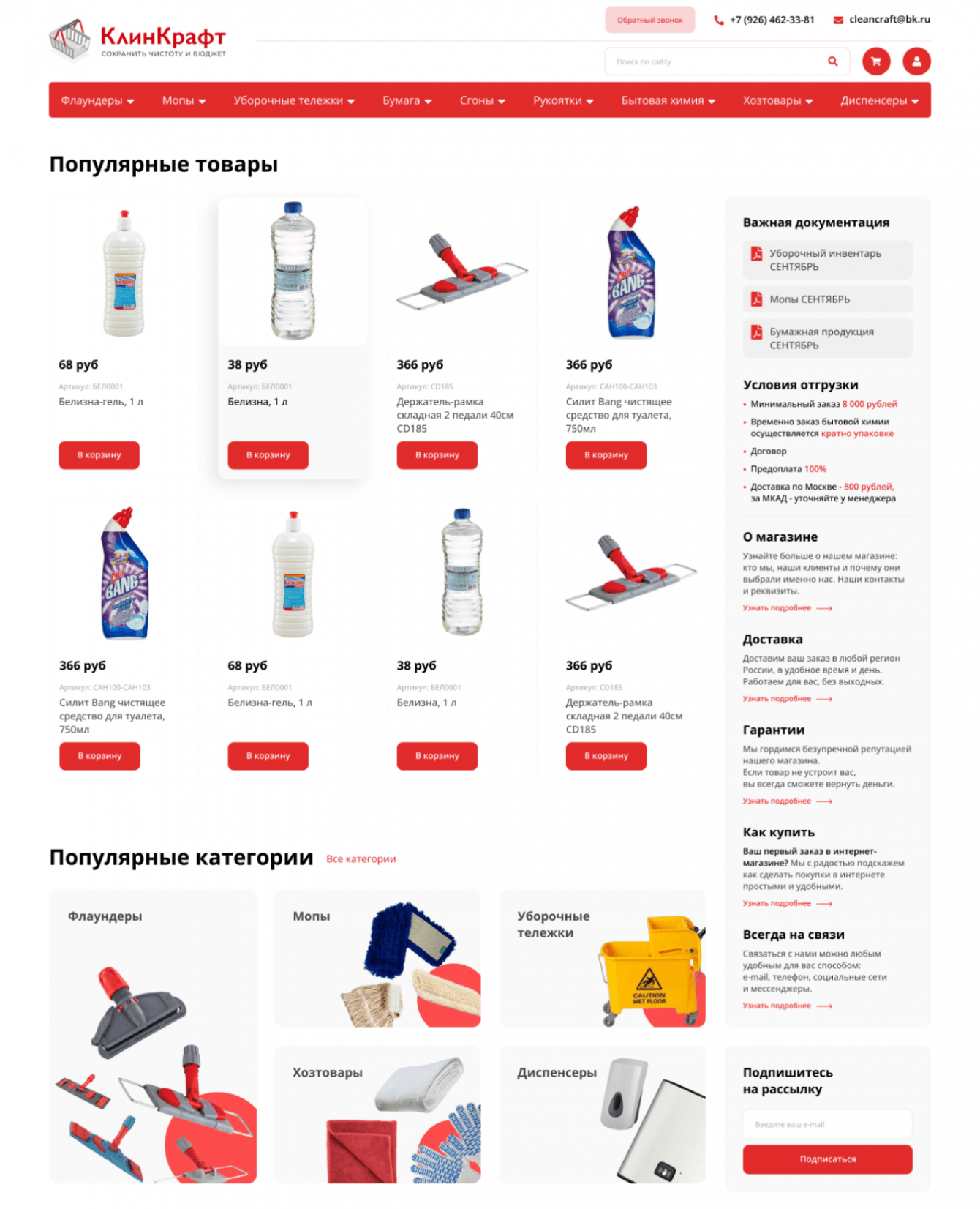 Компания КлинКрафт специализируется на оптовой и розничной продаже уборочного инвентаря, хозтоваров и бытовой химии с 2017 года.
