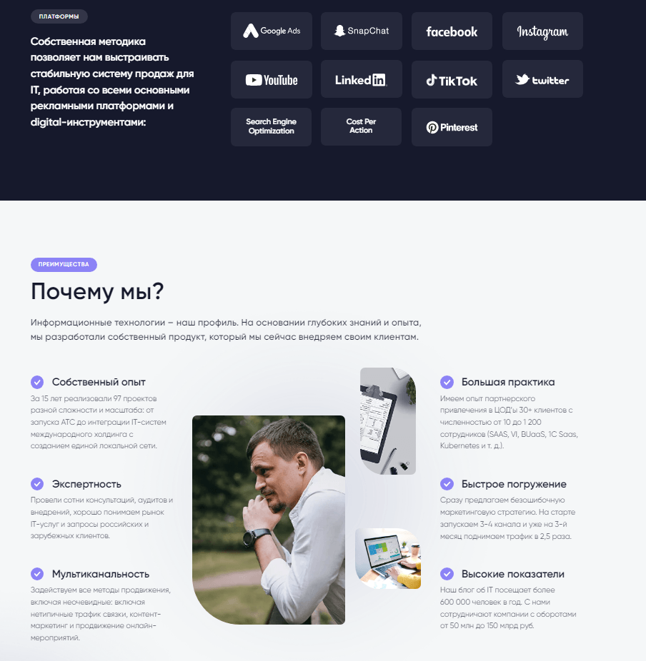 Настроили всплывающий лид-магнит по времени нахождения на сайте (7 секунд) в виде подробного чек-листа о комплексном маркетинге и продвижении IT-компаний на западном рынок