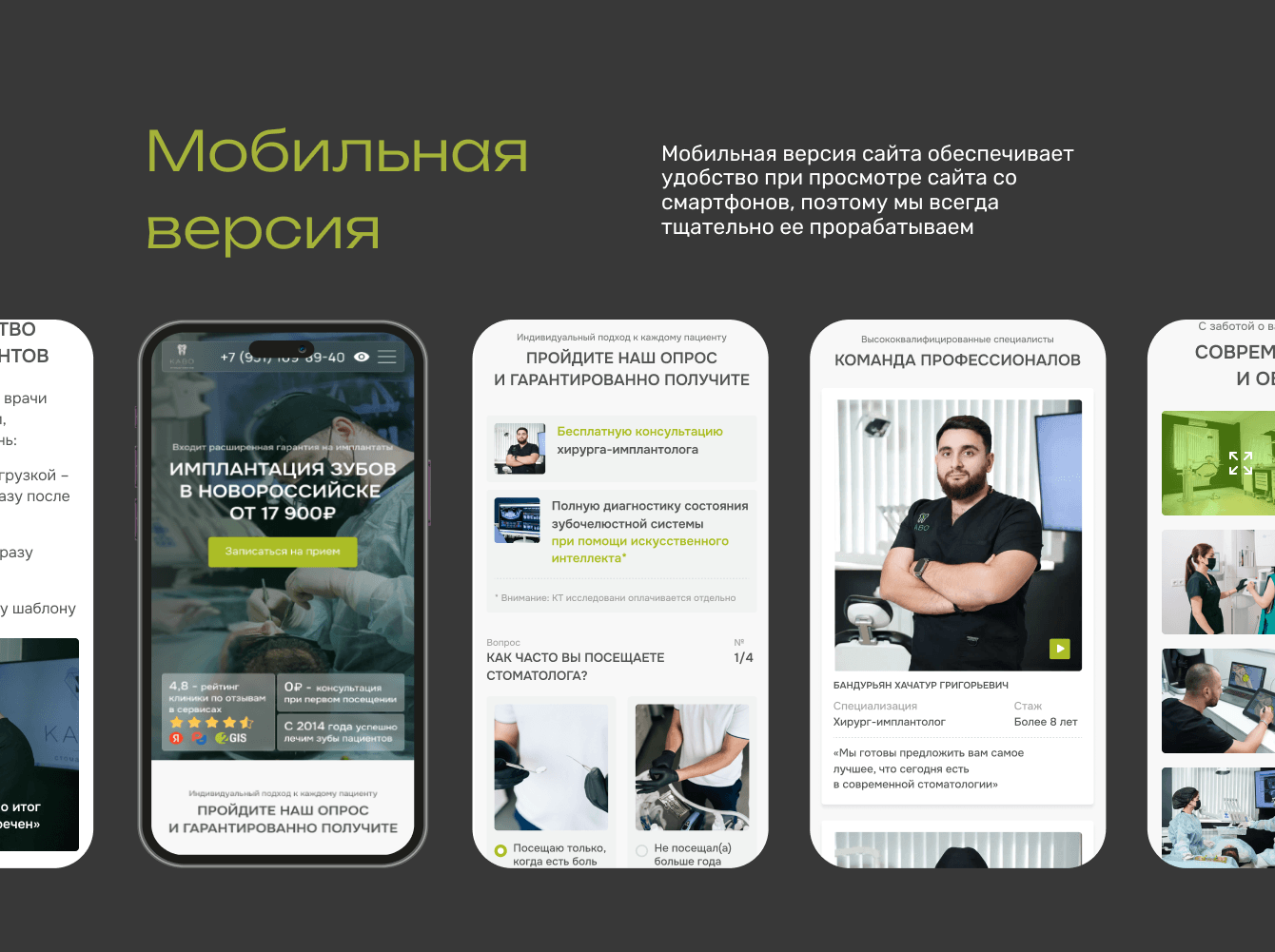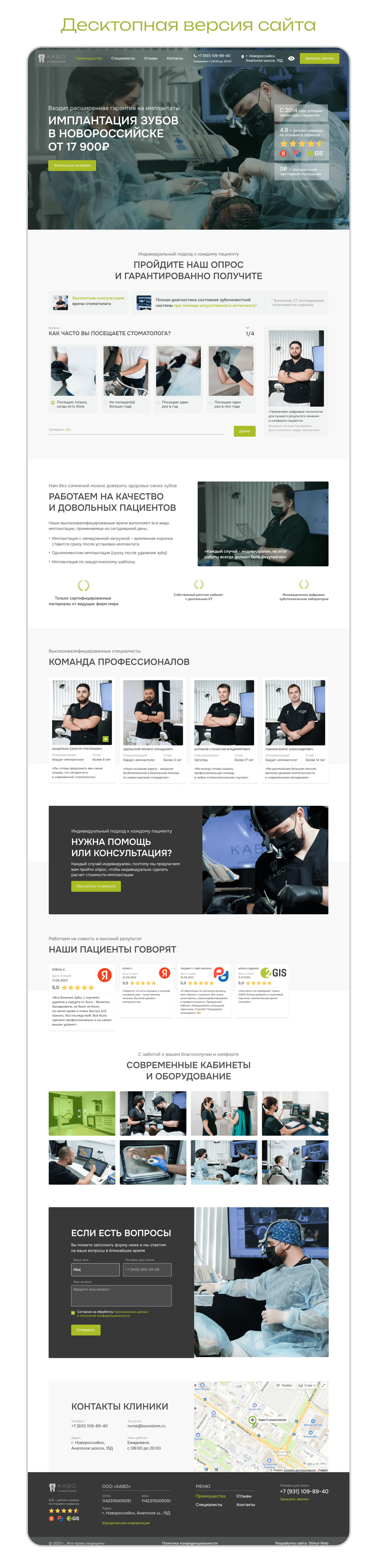 Сделать удобный сайт по имплантации зубов. Необходимо, чтобы каждый потенциальный пациент имел полное представление о клинике, её специалистах и услугах. Так же стояла задача реализовать версию для слабовидящих