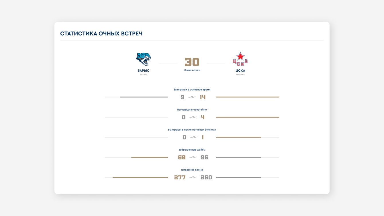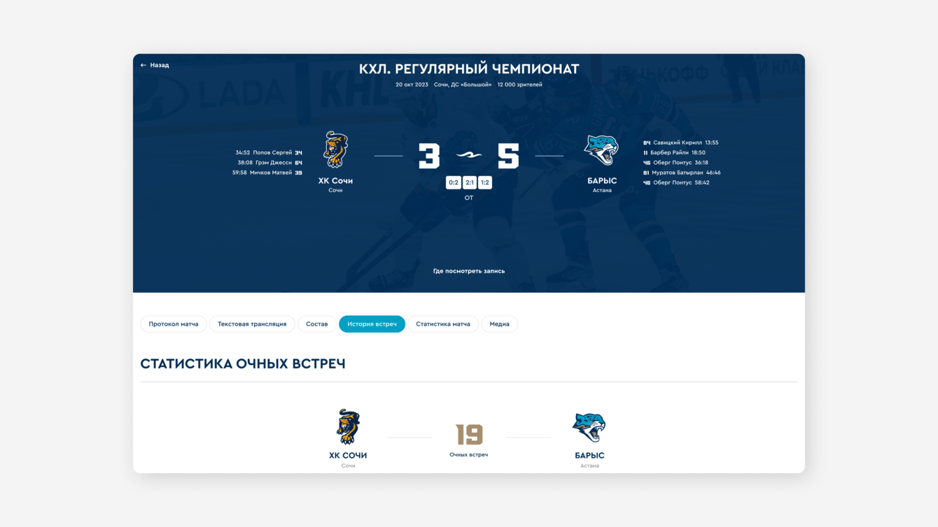 с КХЛ (команды «Барыс» и «Снежные барсы» для отображения актуальных данных статистик, матчей, данных об игроках на сайте.