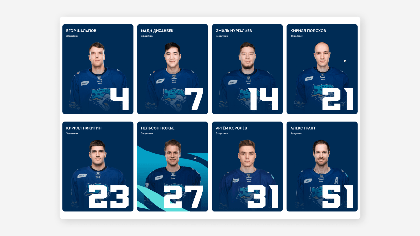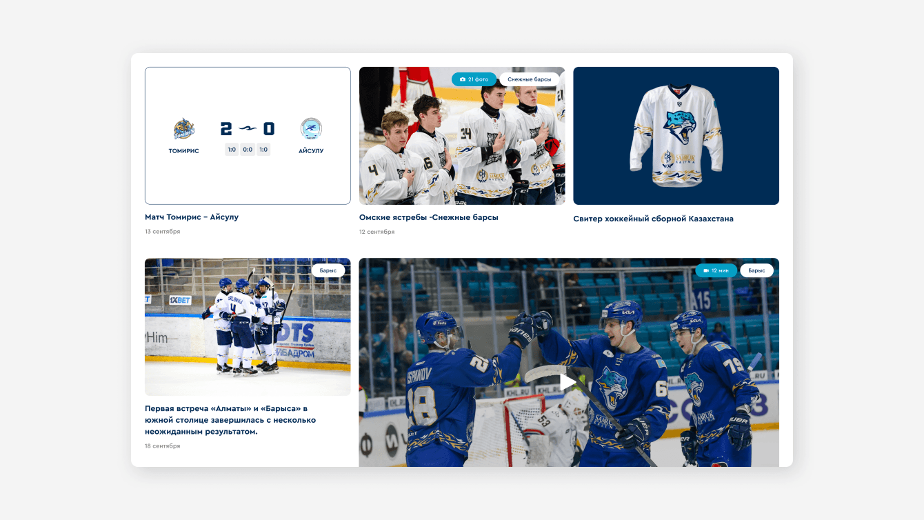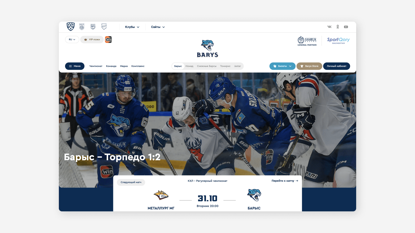 Перед нами стояла задача объединить все команды из системы хоккейного клуба: «Снежные Барсы», «Томирис», «Барыс», команда, играющая в лиге Jastar. Выделить каждую, подчеркнуть индивидуальность при этом все на одном сайте.