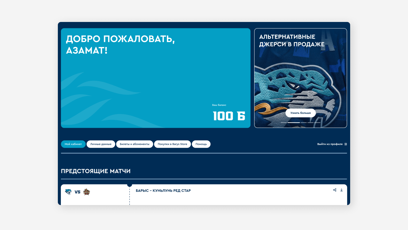 Помимо сайта разработали личный кабинет болельщика, в котором отображаются все покупки пользователя (билеты, абонементы, мерч), а также актуальное количество бонусов.