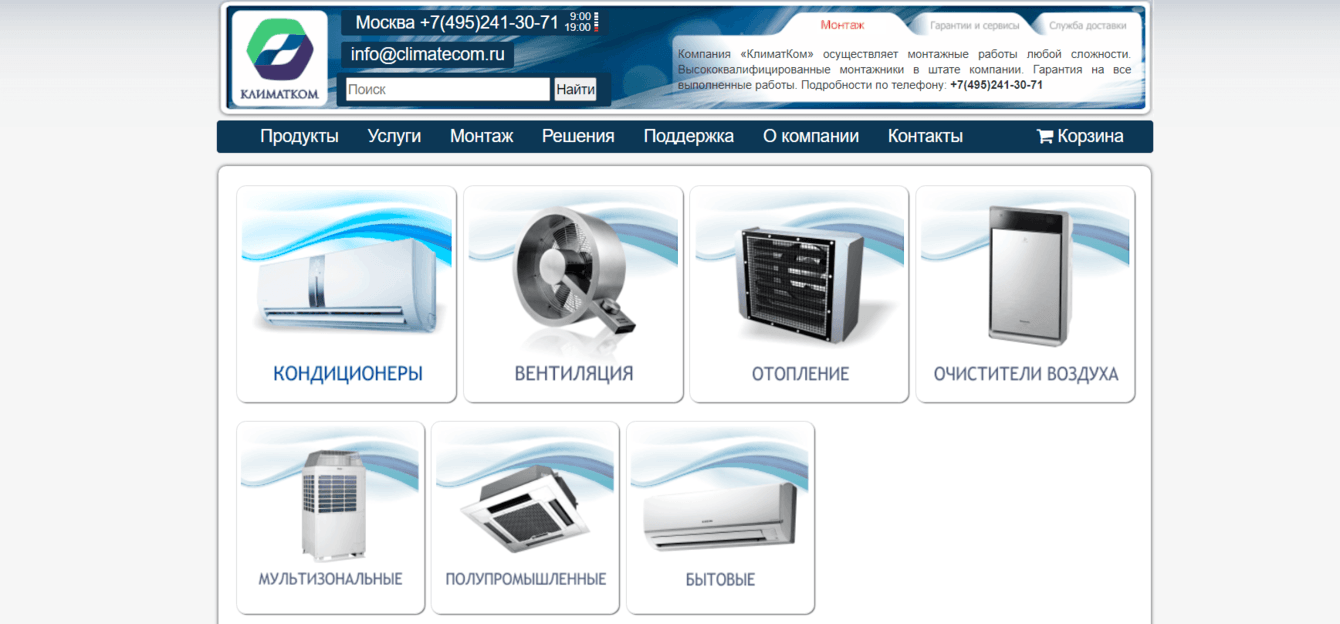 ООО «КлиматКом» - это продажа полного спектра климатического оборудования (вентиляция, кондиционирование, отопление, увлажнение, осушение), которое можно увидеть и потрогать в шоу-руме.