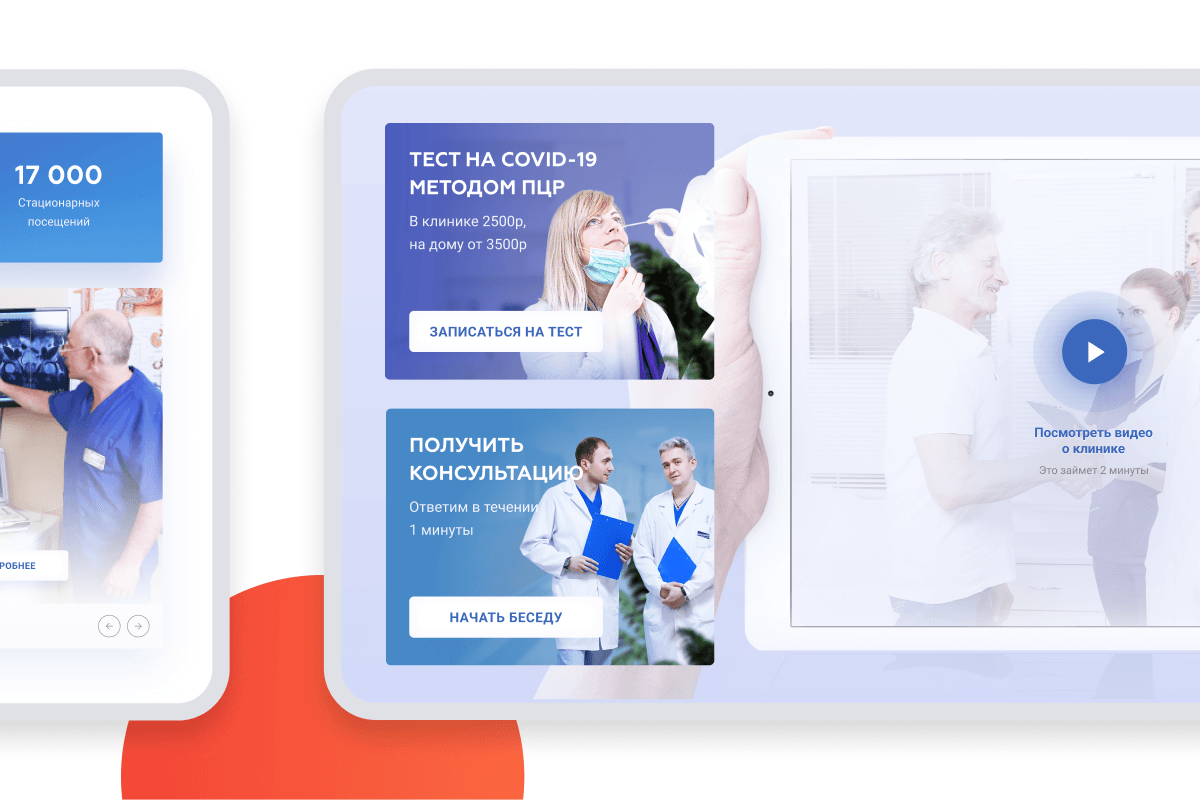 В процессе работы мы особое внимание уделяли выстраиванию понятной структуры ресурса и поиску эффективных графических решений. Для нас было важно, чтобы потенциальные и реальные пациенты могли интуитивно ориентироваться в услугах сети медицинских учреждений.