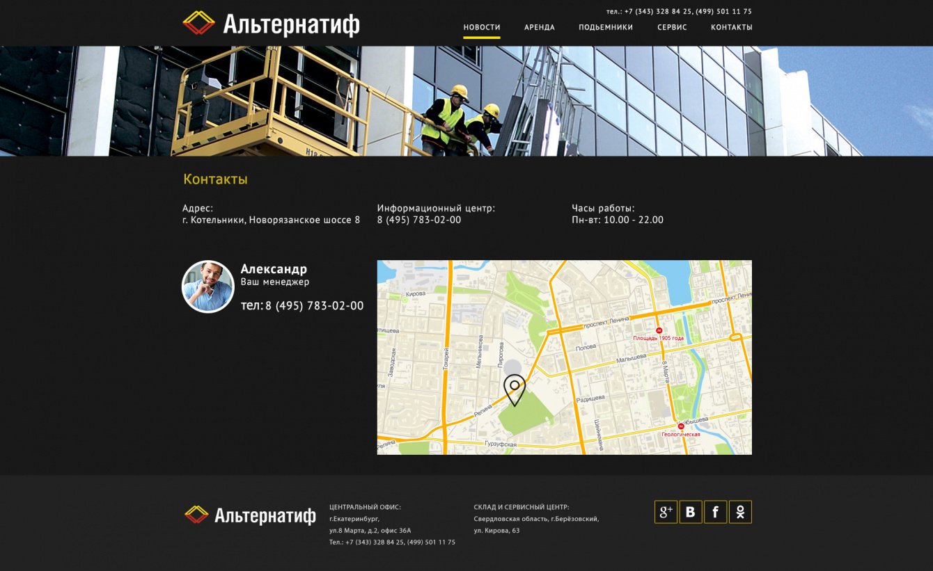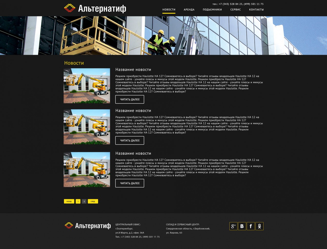 Задачей этого проекта, было создание сайта для компании "Альтернатиф" занимающейся в сфере поднятия грузов.