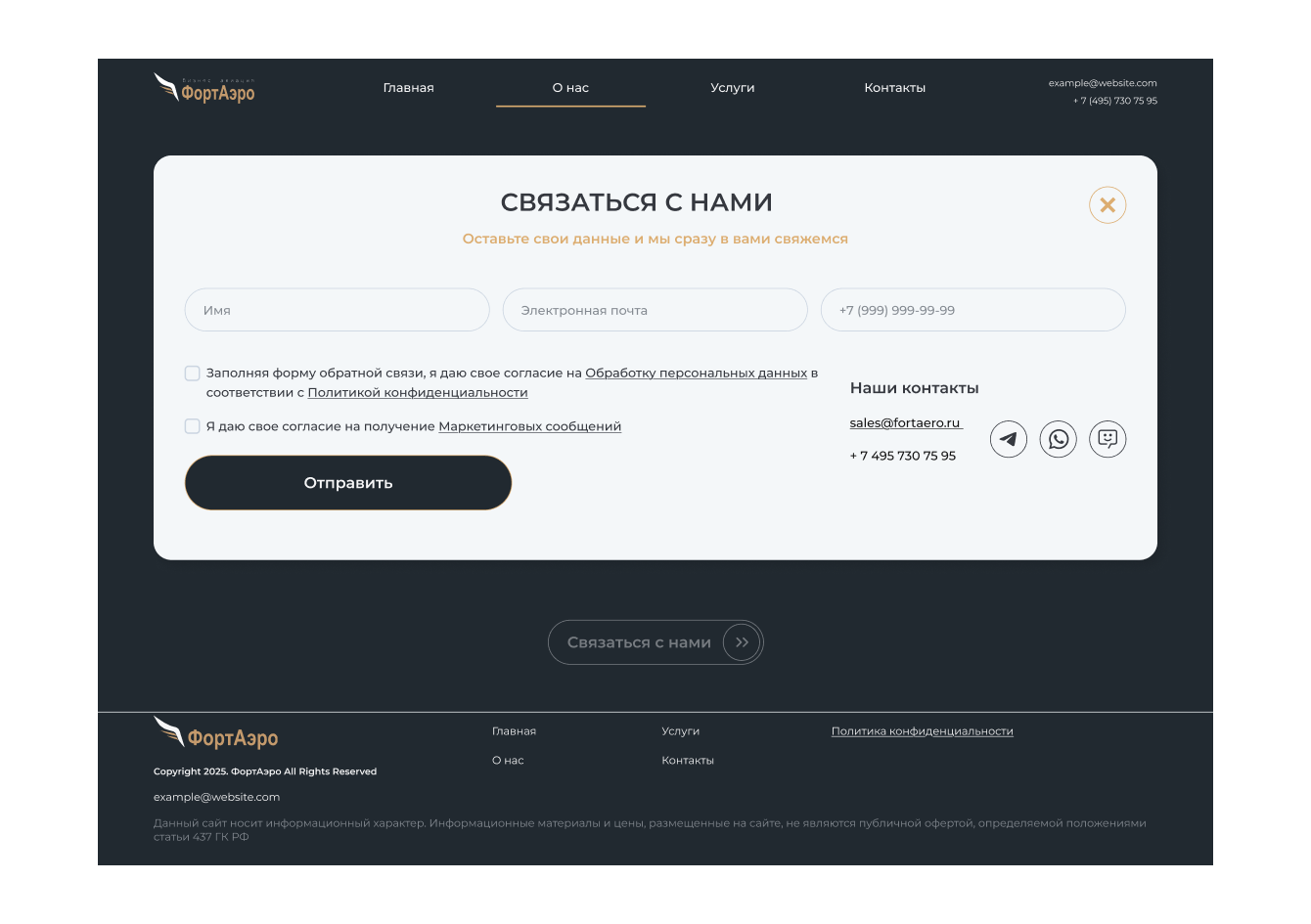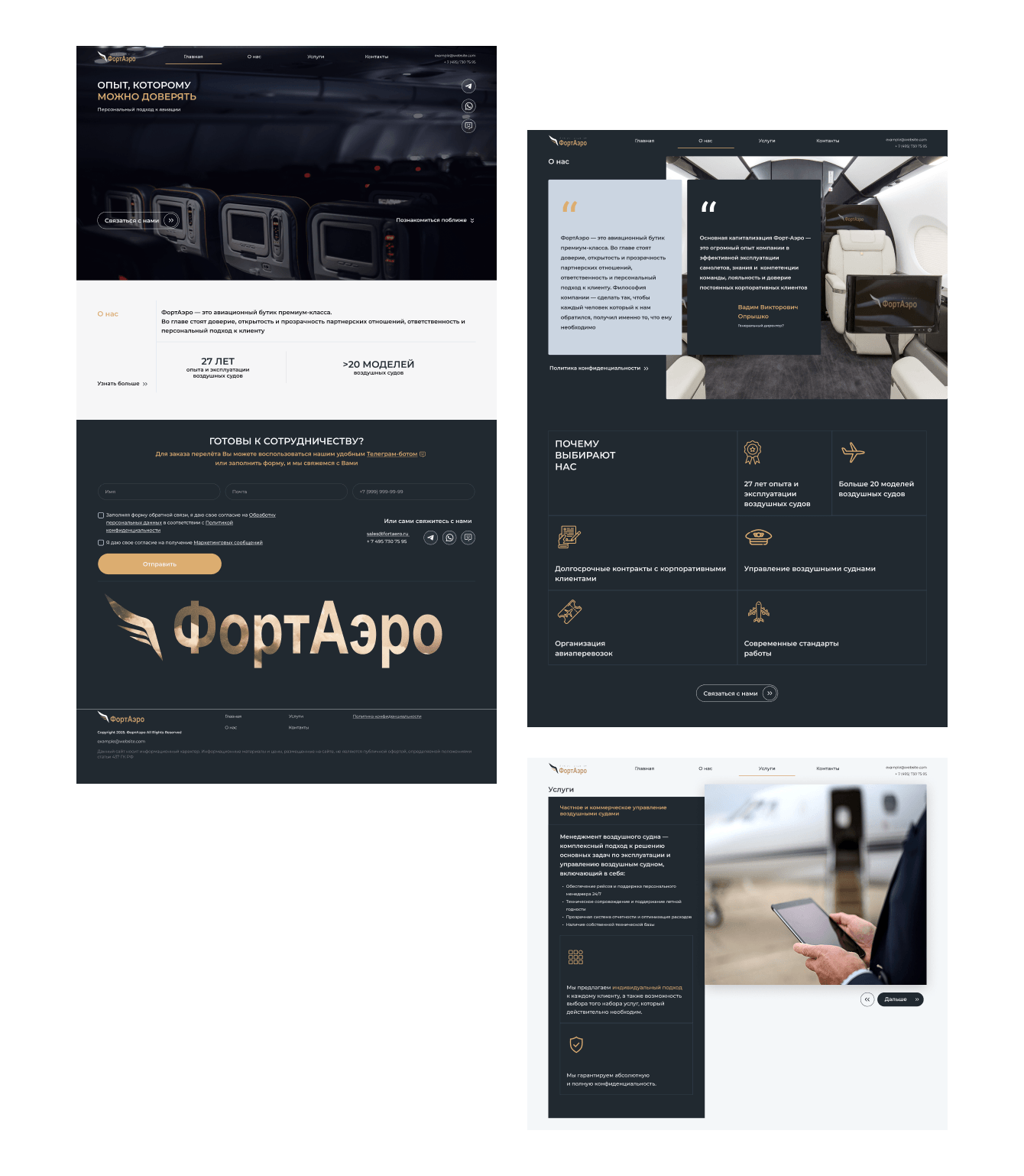 Клиент: FORTAERO — авиационная компания, предоставляющая услуги по организации частных перелётов и техническому обслуживанию воздушных судов.