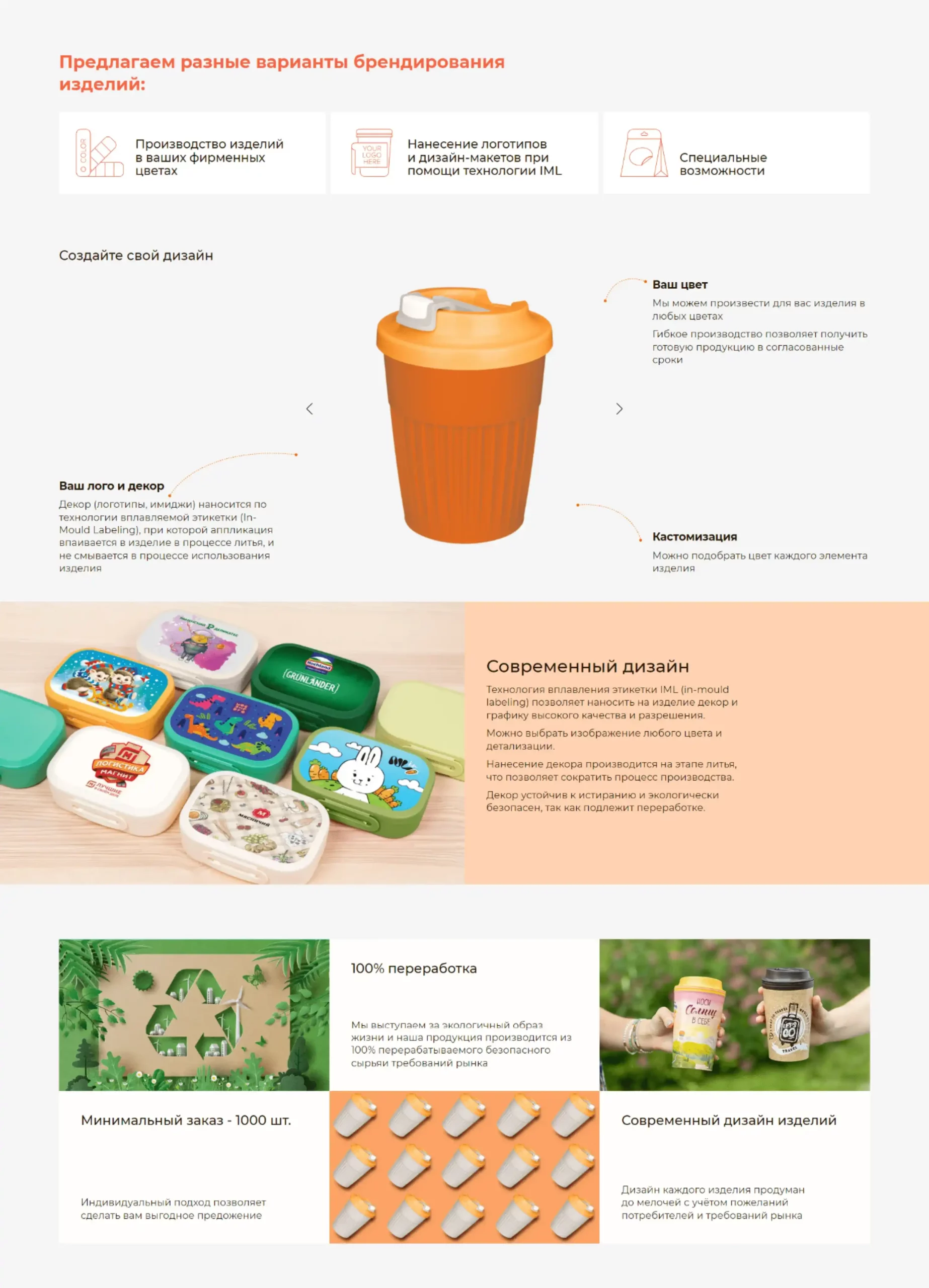 4. Внедрение 3D-анимации. Уникальной деталью проекта стала 3D-анимация, позволяющая пользователям вращать виртуальный стаканчик с дизайном, который может предоставить компания. Интерактивная 3D-анимация демонстрирует возможности кастомизации продукции и привлекает внимание пользователей, делая процесс взаимодействия с сайтом более увлекательным и информативным.