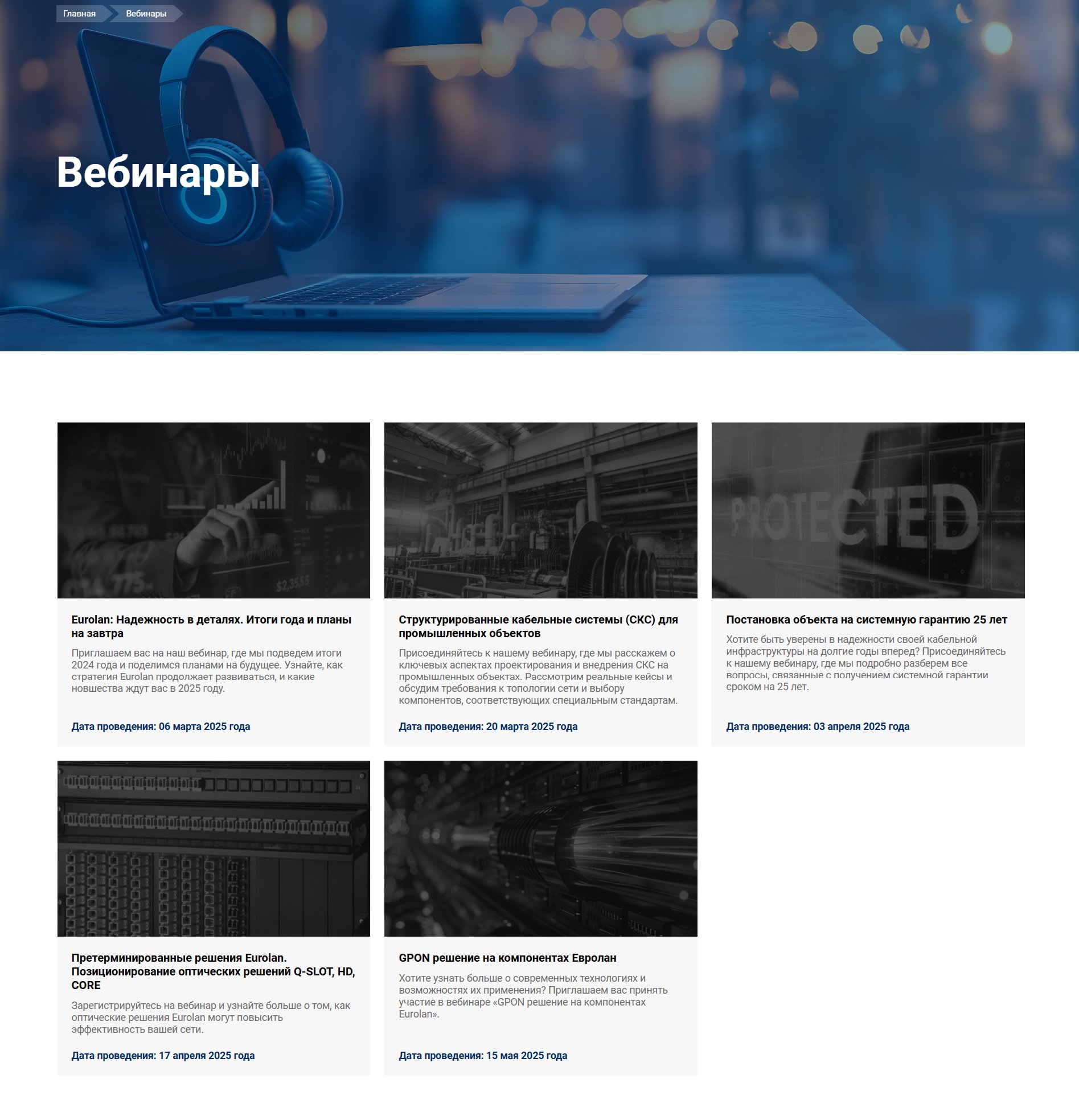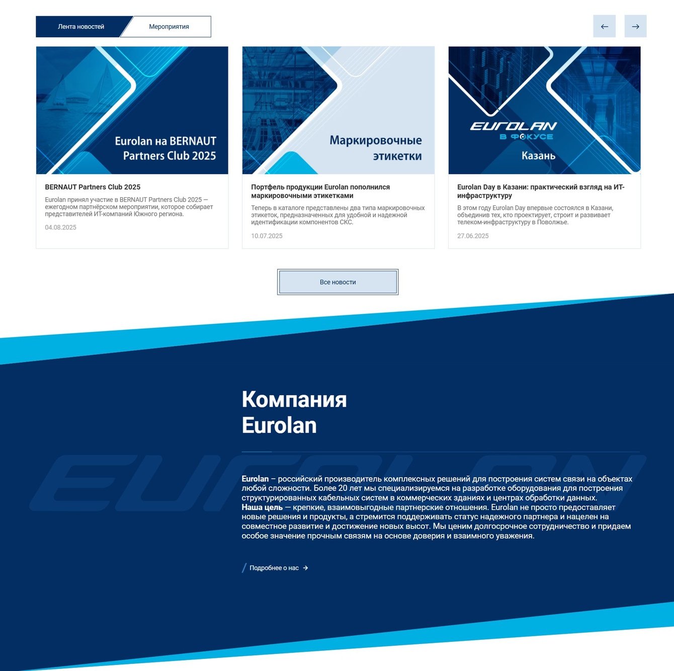 Получив заказ на создание web пространства для клиентов «Евролана», мы поняли, что перед нами стоит не простая задача. В настоящее время рынок производителей СКС в России активно развивается и с каждым днем появляются новые малые и крупные компании, желающие занять топ позиции в поисковых системах интернета.