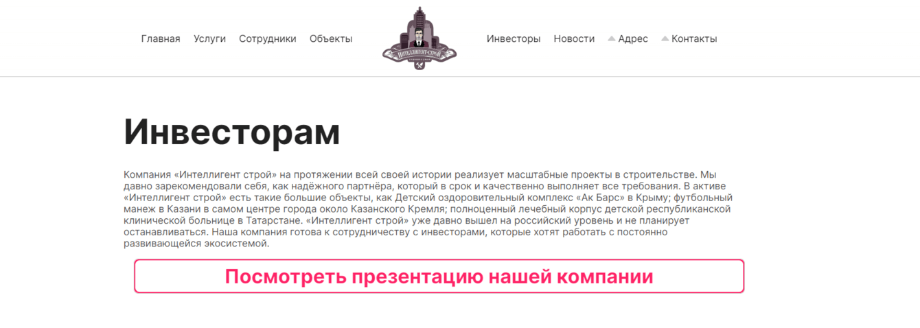 Клиент: строительная компания "Интеллигент Строй"