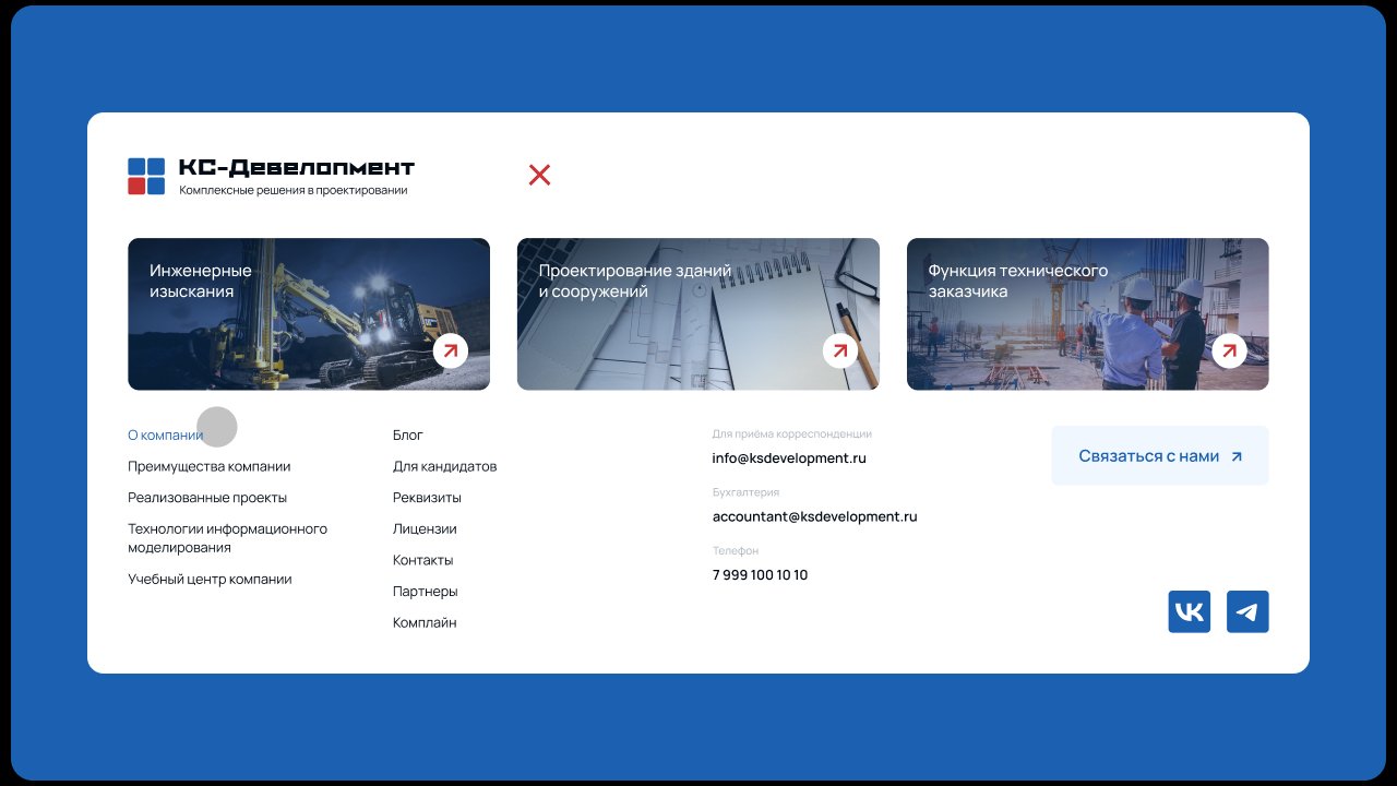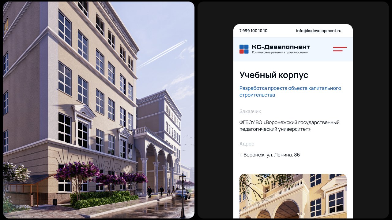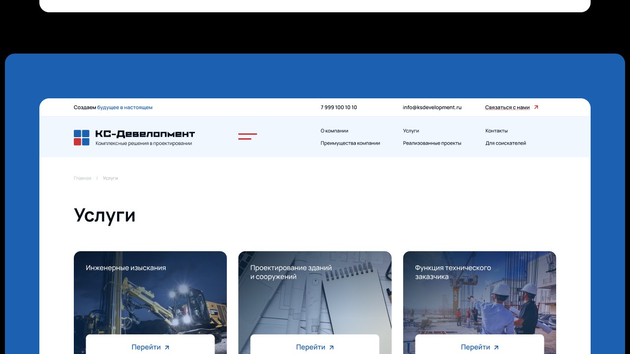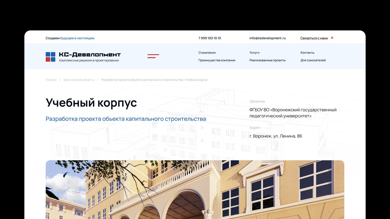 Сайт такой крупной и значимой компании, как КС-Девелопмент, должен в полной мере отражать её философию, рассказывать о направлениях деятельности, достижениях и конкурентных преимуществах.