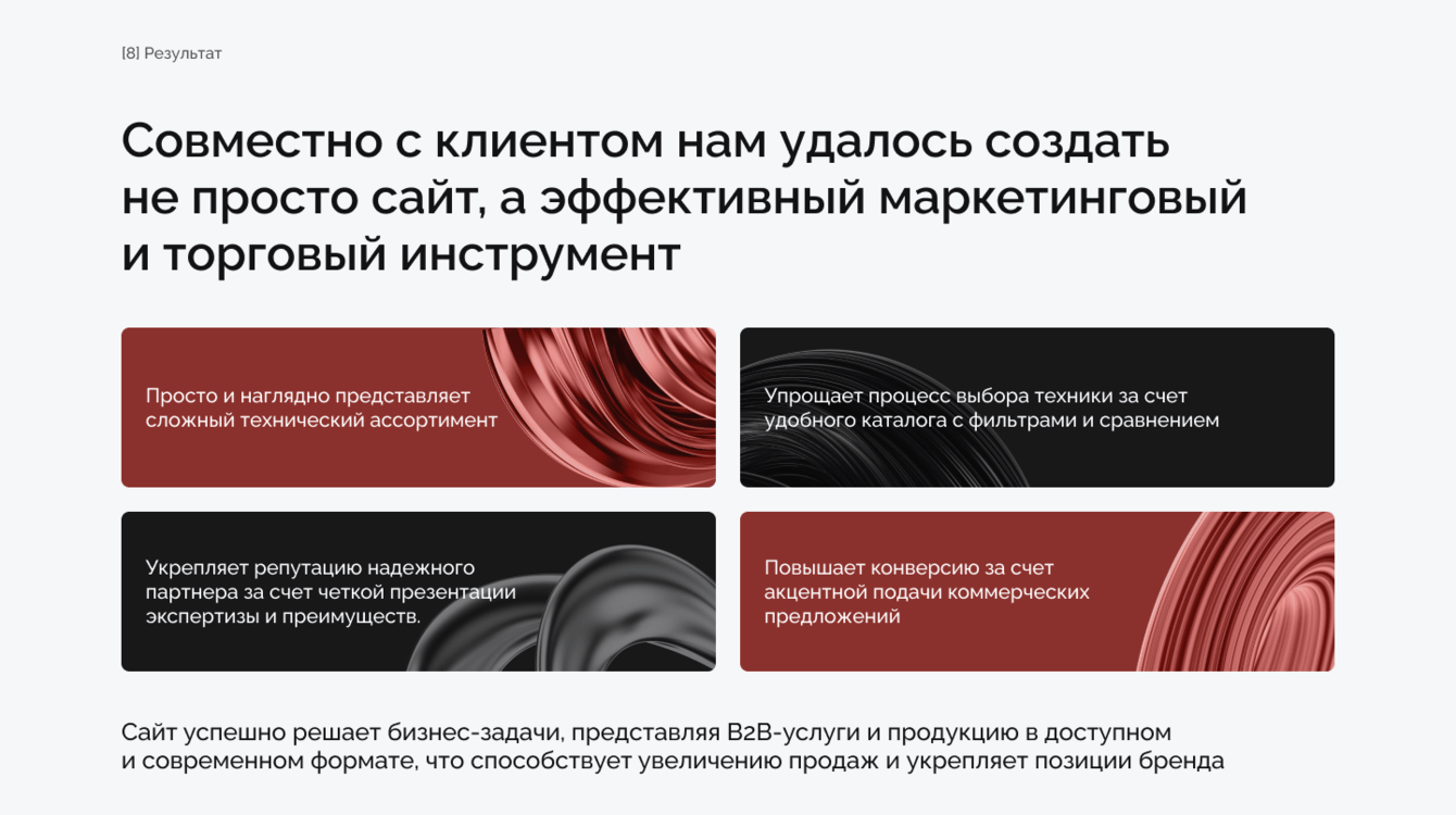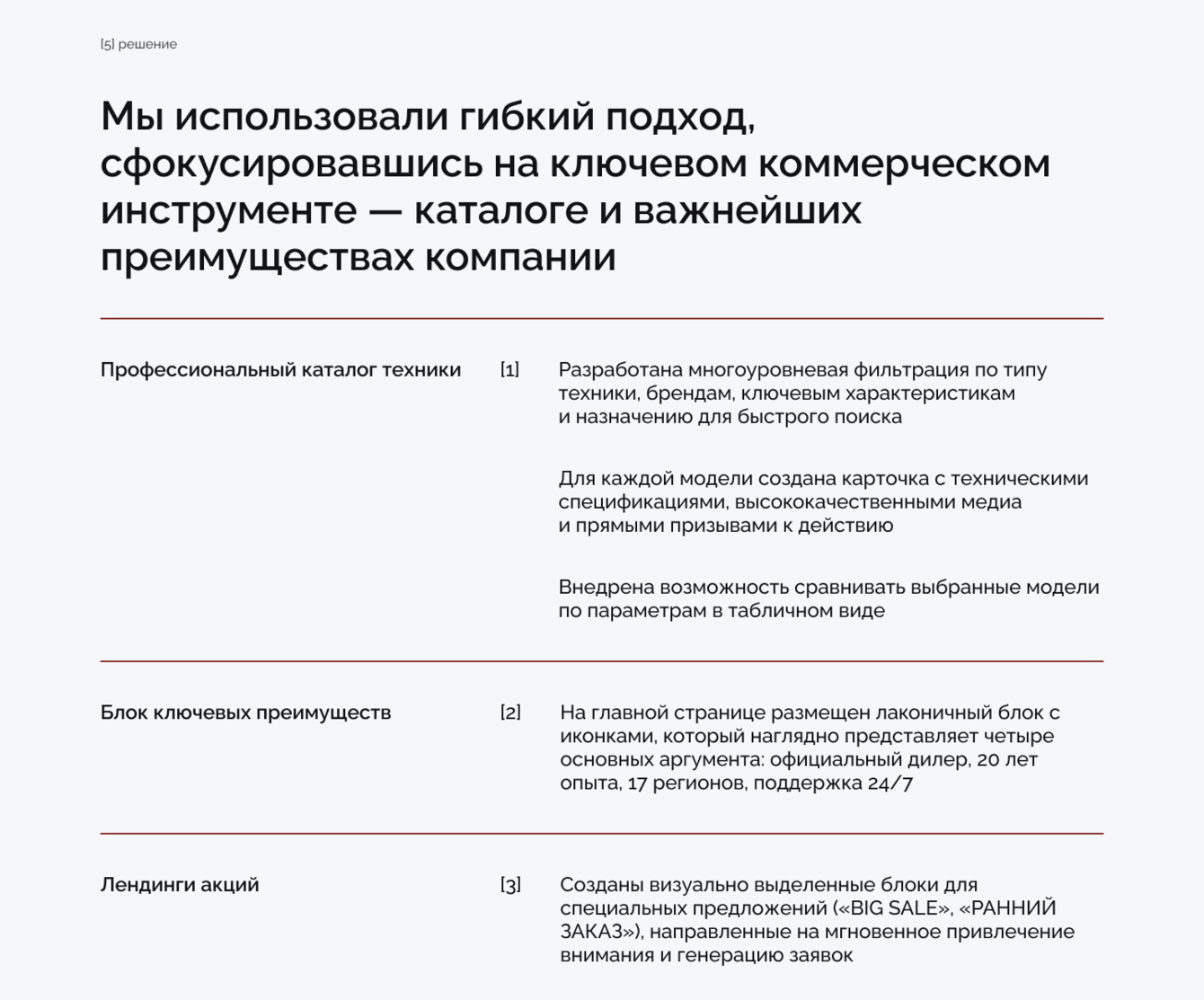 Мы использовали гибкий подход, сфокусировавшись на ключевом коммерческом инструменте — каталоге и важнейших преимуществах компании.