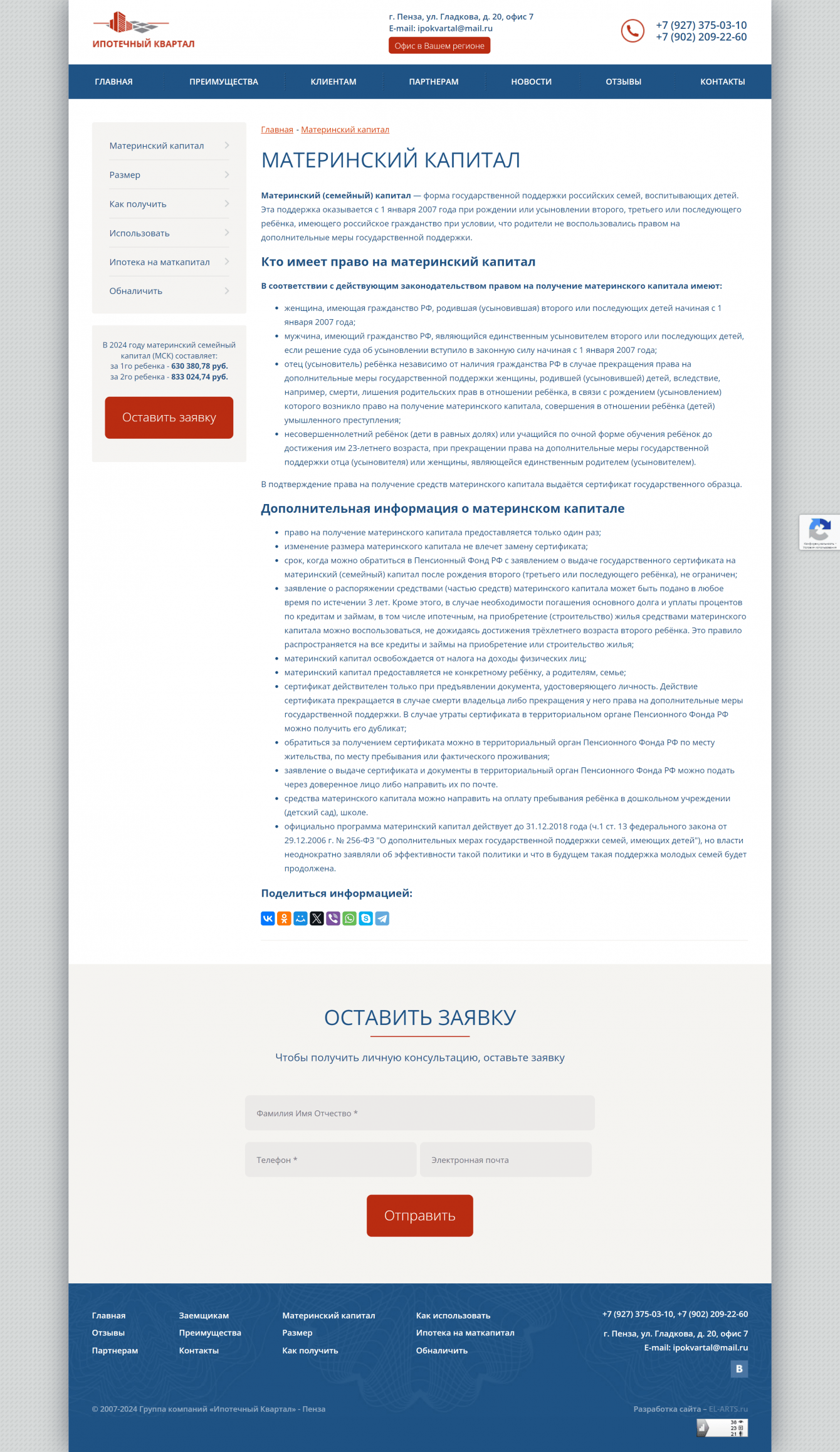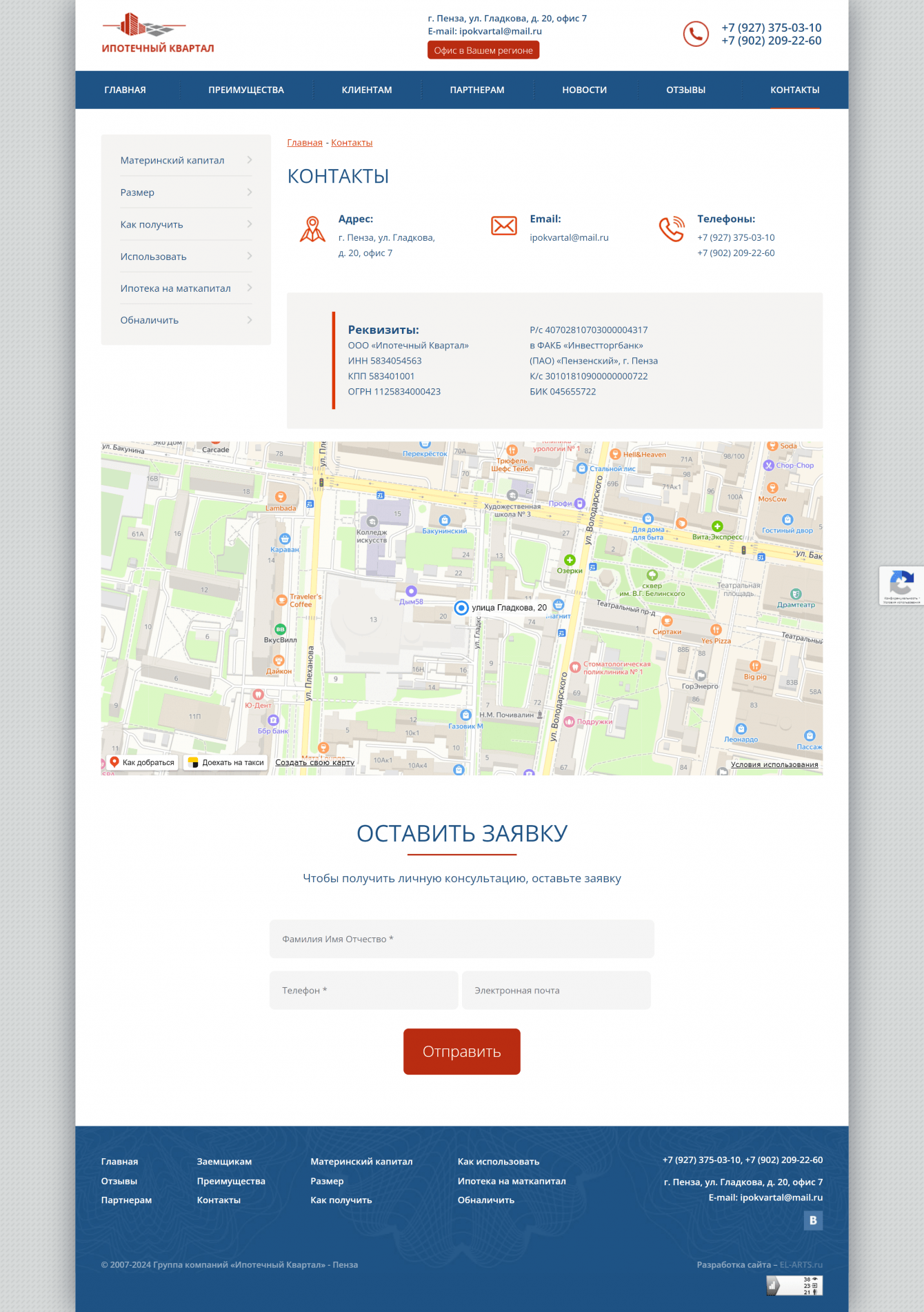 Необходимо разработать сайт «под ключ» для компании ООО «Ипотечный Квартал».
