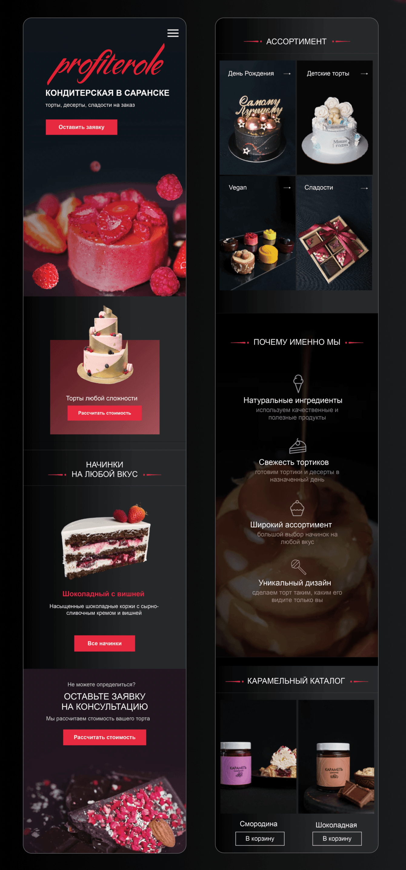 Создание посадочной страницы для кондитерской, которая делает торты на заказ.