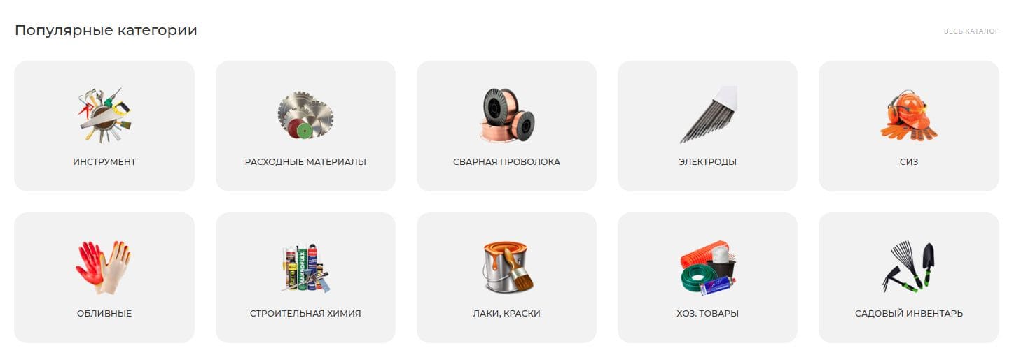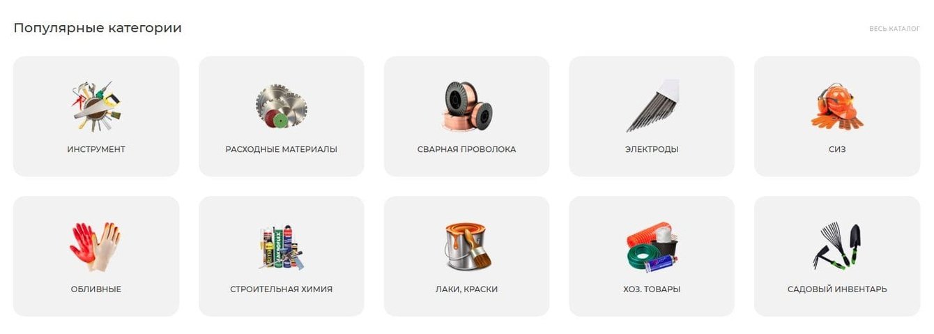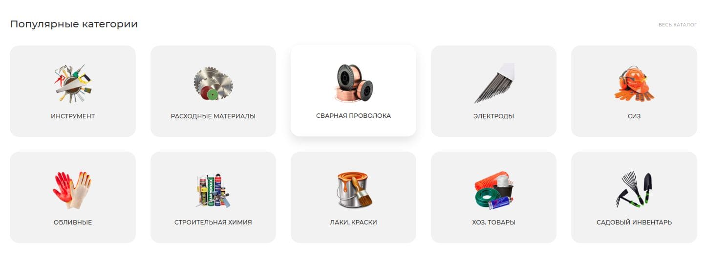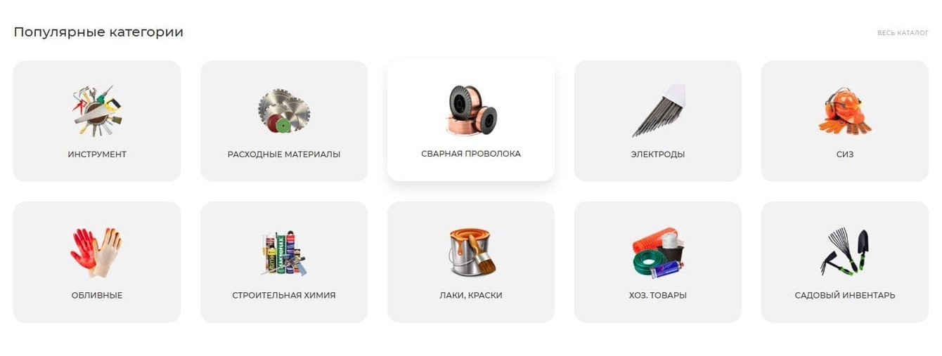 Ещё мы добавили возможность сразу попасть в каталог товаров. Картинки категорий — кликабельны, а если навести на них курсор, они подсвечиваются. Это делает навигацию проще и показывает, что у сайта есть свой неповторимый стиль.
