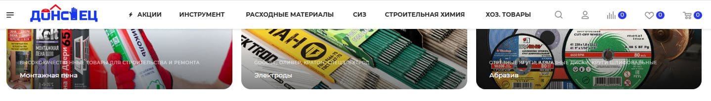 Для сайта «ДонСпец» мы создали современный дизайн, который подчёркивает надёжность и профессионализм компании. Цветовая гамма — белый, чёрный, серый и синий — ассоциируется с чистотой и стабильностью, акцентирует внимание на компетентности магазина в области хозтоваров и стройматериалов. Минималистичный стиль упрощает восприятие информации, что важно для интернет-магазина: пользователи хотят быстро находить нужные товары.