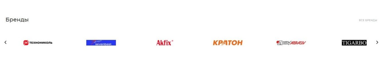 Логотипы не просто украшают страницу — они интерактивные: кликните на логотип — и вы сразу окажетесь в каталоге с товарами этого бренда.