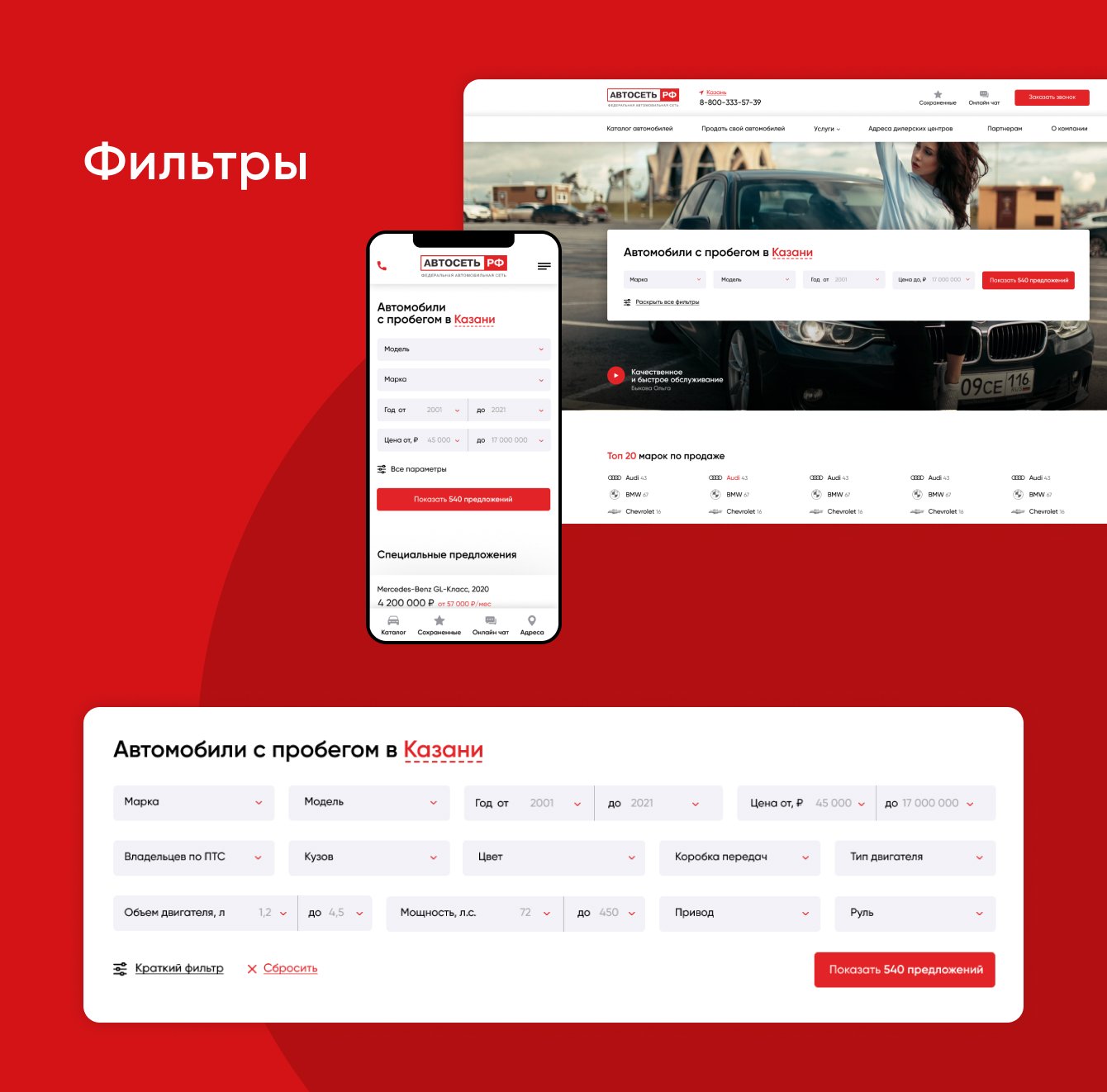 Ранее сайт Автосети.рф включал несколько региональных поддоменов. Грубо говоря, человек из Ульяновска мог зайти и посмотреть предложения только для своего города. Но как показало исследование, человеку не важно, в каком городе находится авто. Если предложение его устраивает – он ринется за новой “ласточкой” даже за сотни километров. Поэтому мы отказались от поддоменов, а сосредоточились на создании фильтра.
