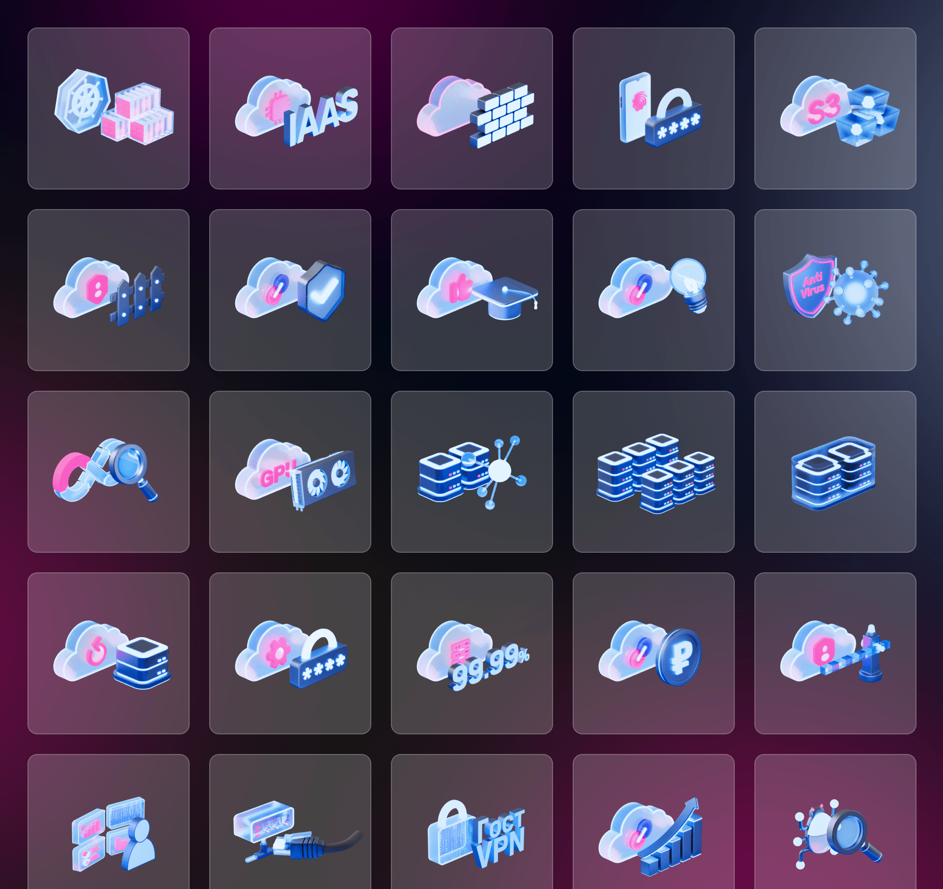 При создании дизайна сайта мы вдохновлялись ведущими игроками IT-рынка. Также мы обратили внимание на визуальные решения финтех-продуктов, а дополнительно черпали вдохновение в 3D-концептах с эффектом стекла. Мы смотрели разные 3D-иллюстрации — от простых до очень детализированных, с акцентными цветами, неоновыми эффектами, градиентами и подсветкой. В итоге сделали несколько вариантов для каждого продукта компании и выбрали из них самые удачные.
