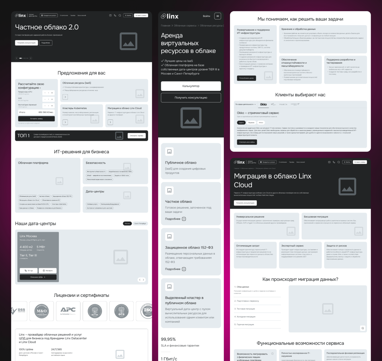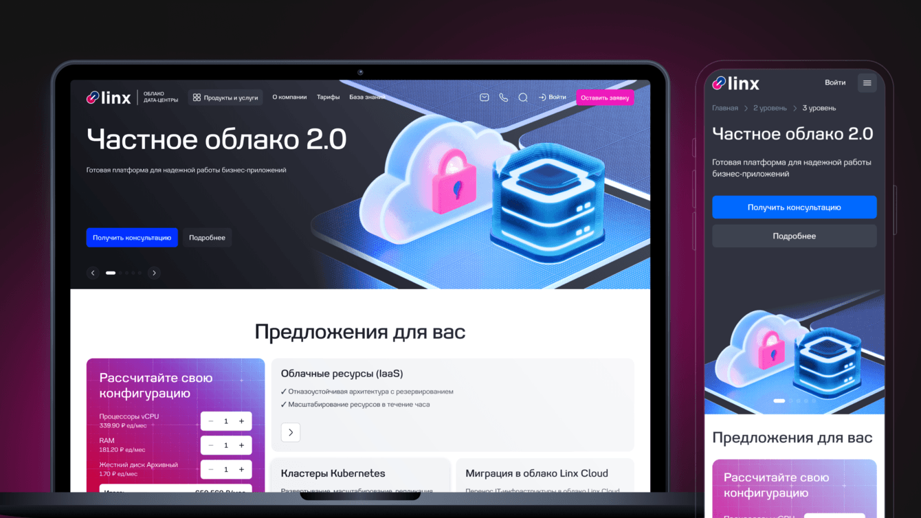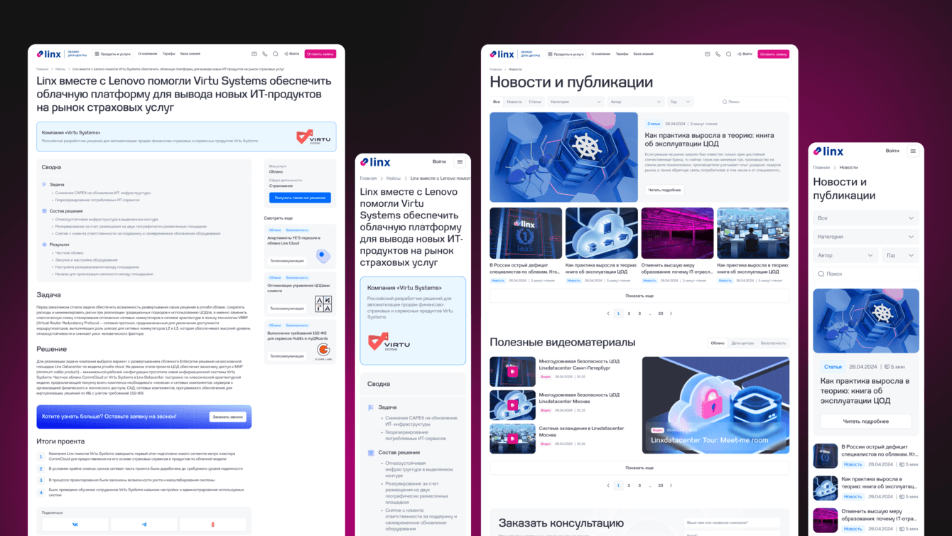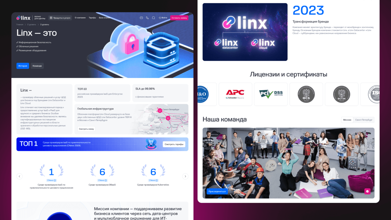 Linx — компания, предоставляющая услуги дата-центра и облачных сервисов. Старый сайт клиента уже не соответствовал задачам бизнеса и был реализован на WordPress, что ограничивало возможности по расширению функционала. Нам доверили разработку нового сайта — современного, гибкого, с мощным функционалом. В качестве новой платформы мы предложили 1С-Битрикс.