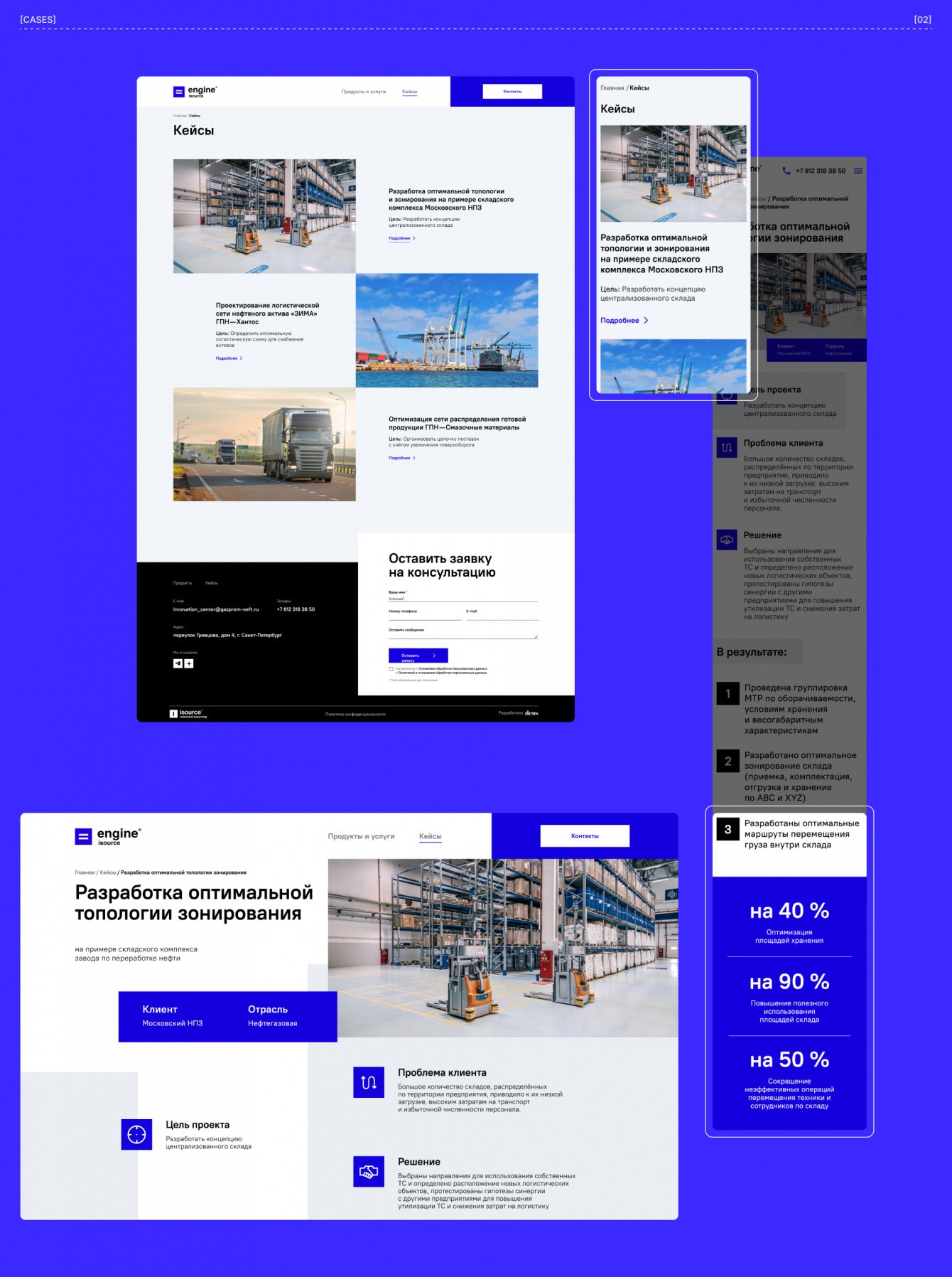 Нашей команде было необходимо разработать дизайн-концепт лендинга, где была бы представлена информация о продуктах и услугах, а также опубликованы кейсы компании.