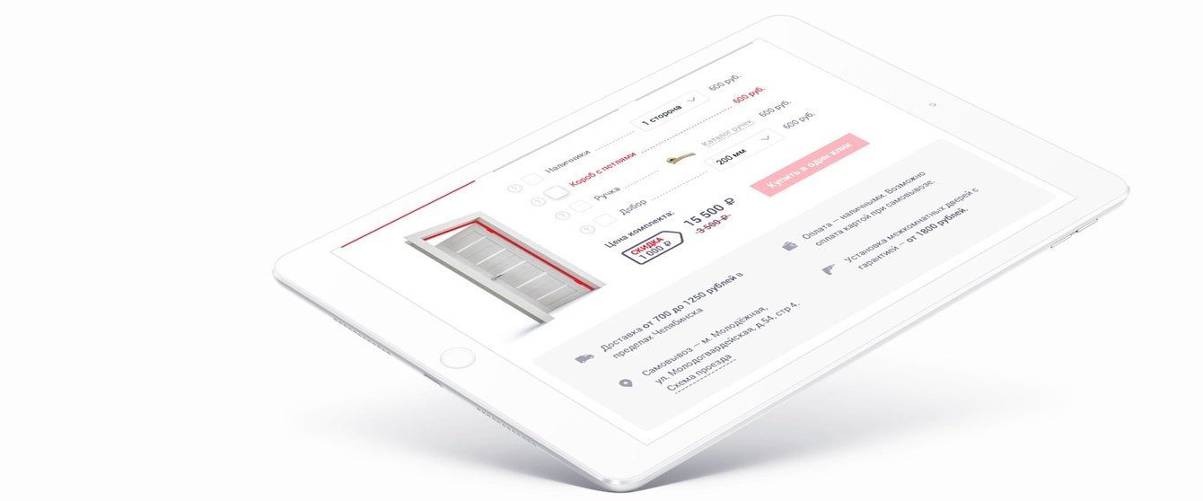 Наш заказчик желал предоставить клиентам честные цены. Для этого мы разработали функцию просчета комплекта для различных типов дверей. Теперь клиент сразу видит, сколько стоят откосы для данной двери, сколько наличники, ручки и петли. Кроме того, мы наглядно показываем на схеме, что представляет собой, например, добор.