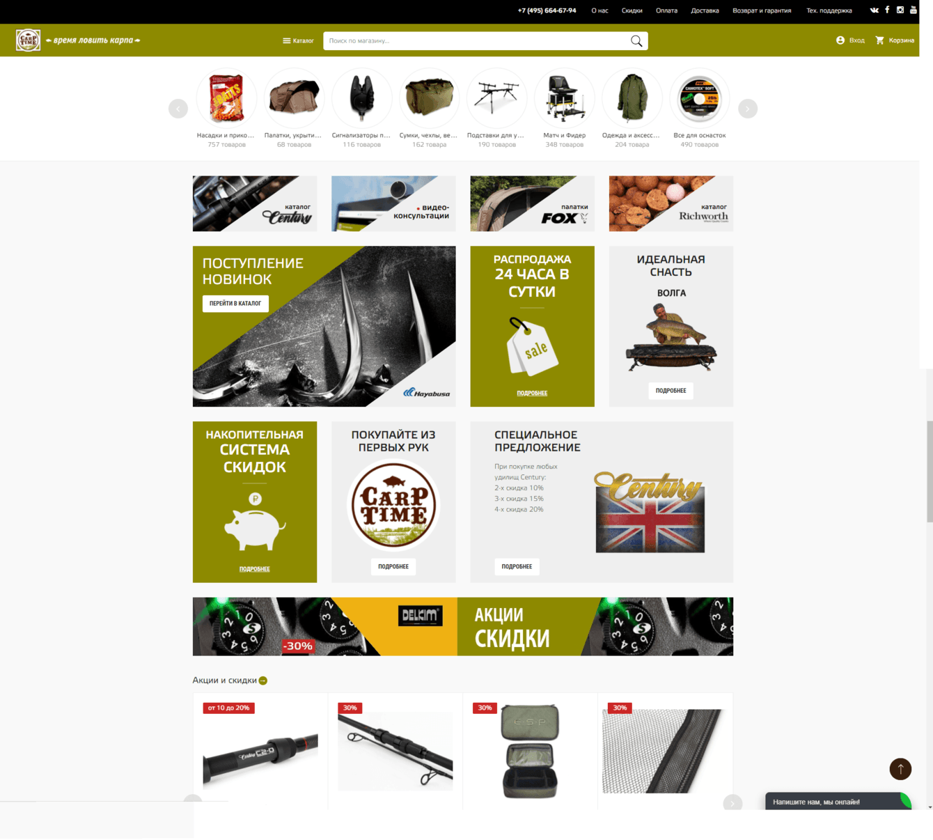 Разработать сайт для интернет-магазина рыболовного оборудования, детально проработать каталог под специфику товара, разместить рекламные блоки товаров, предусмотреть размещение информационной составляющей (тексты, видео)