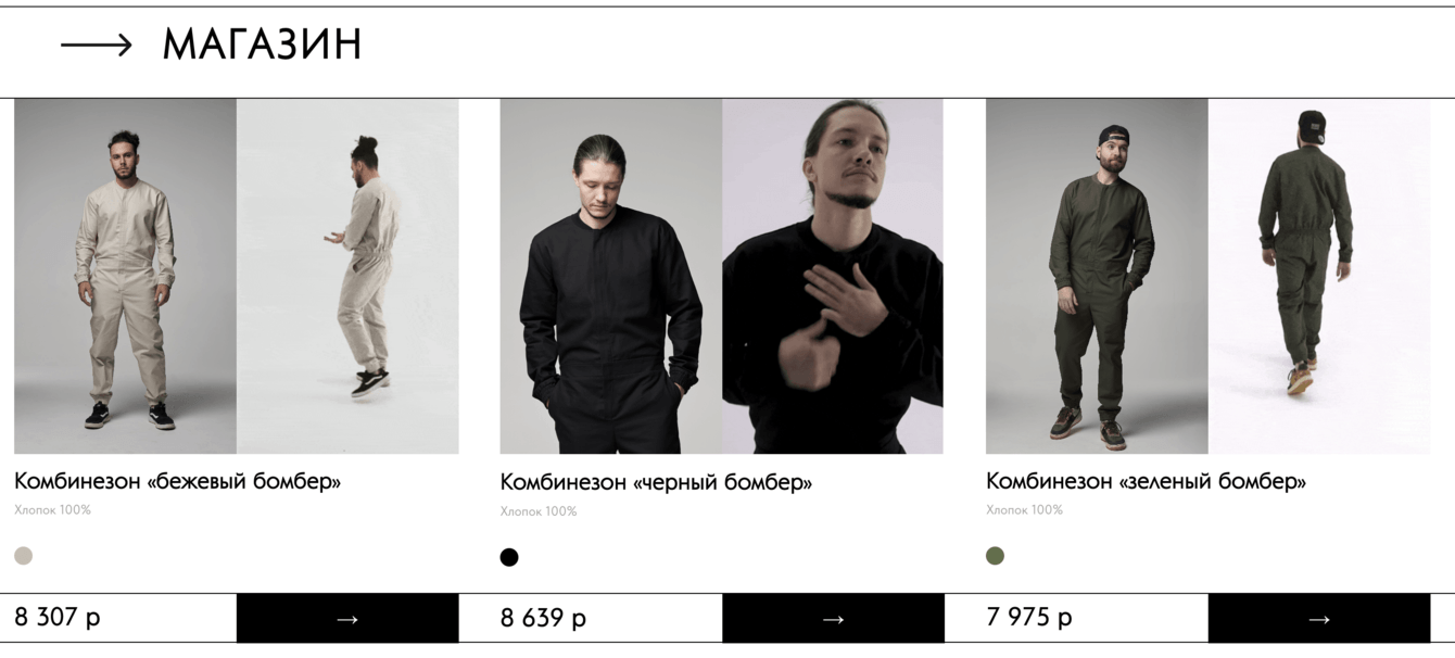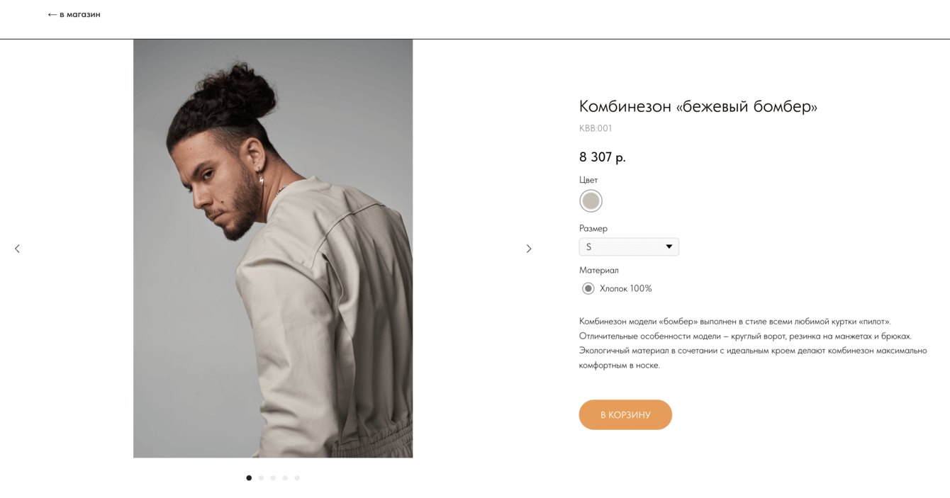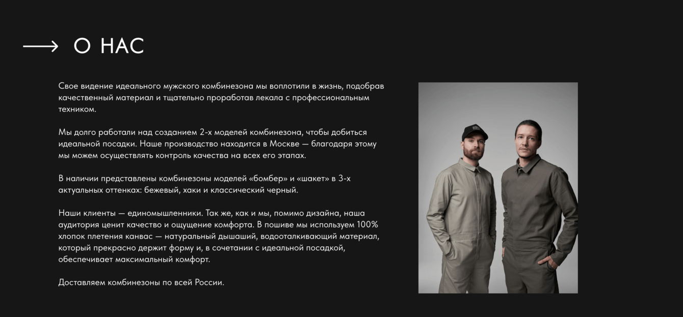 Необходимо было создать интернет-магазин мужских комбинезонов и футболок.