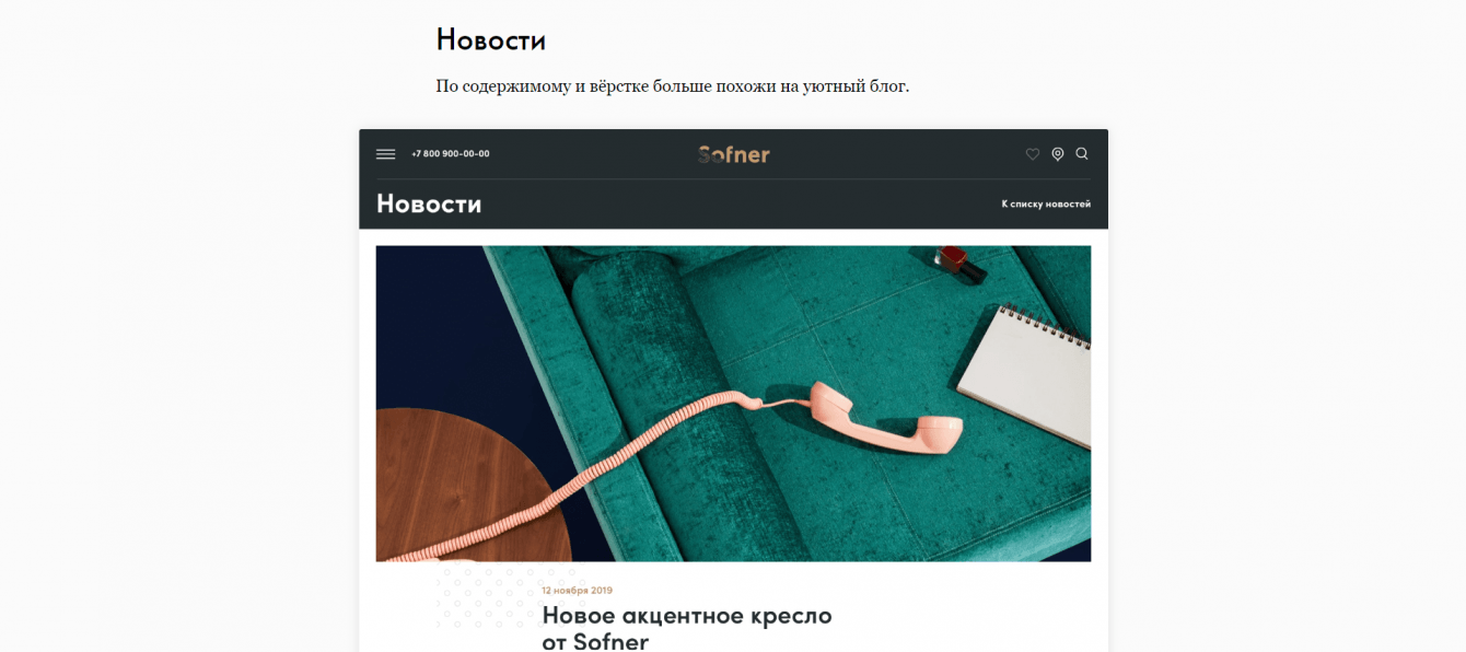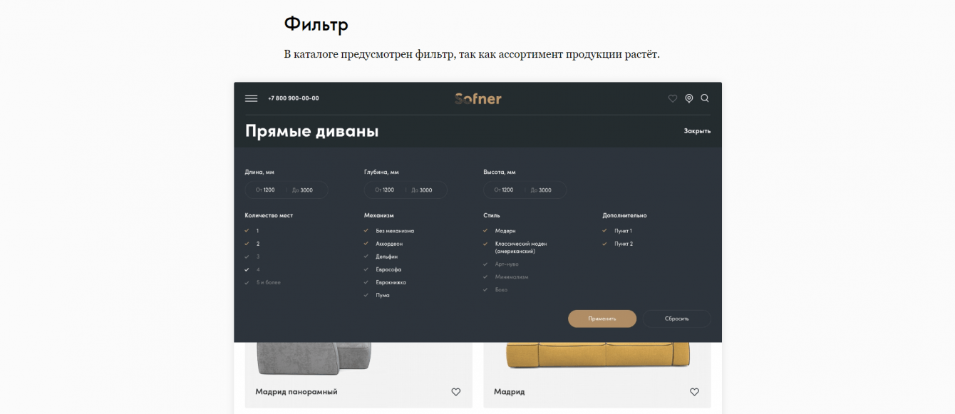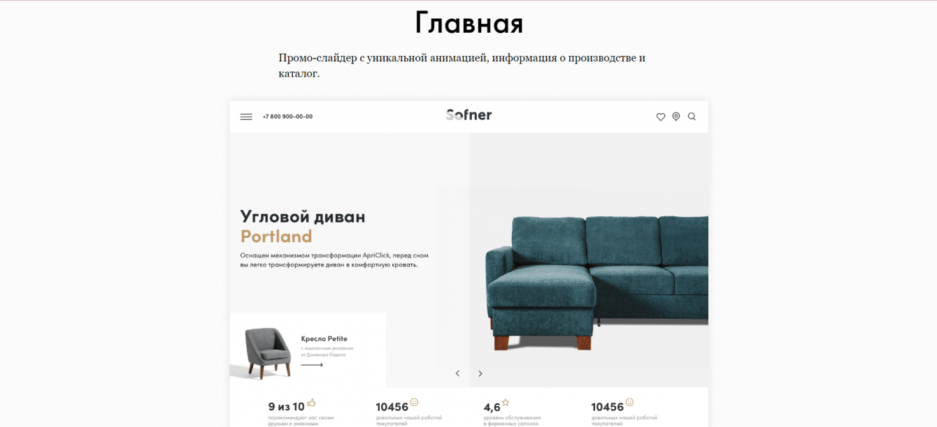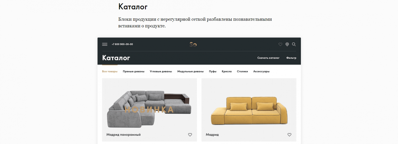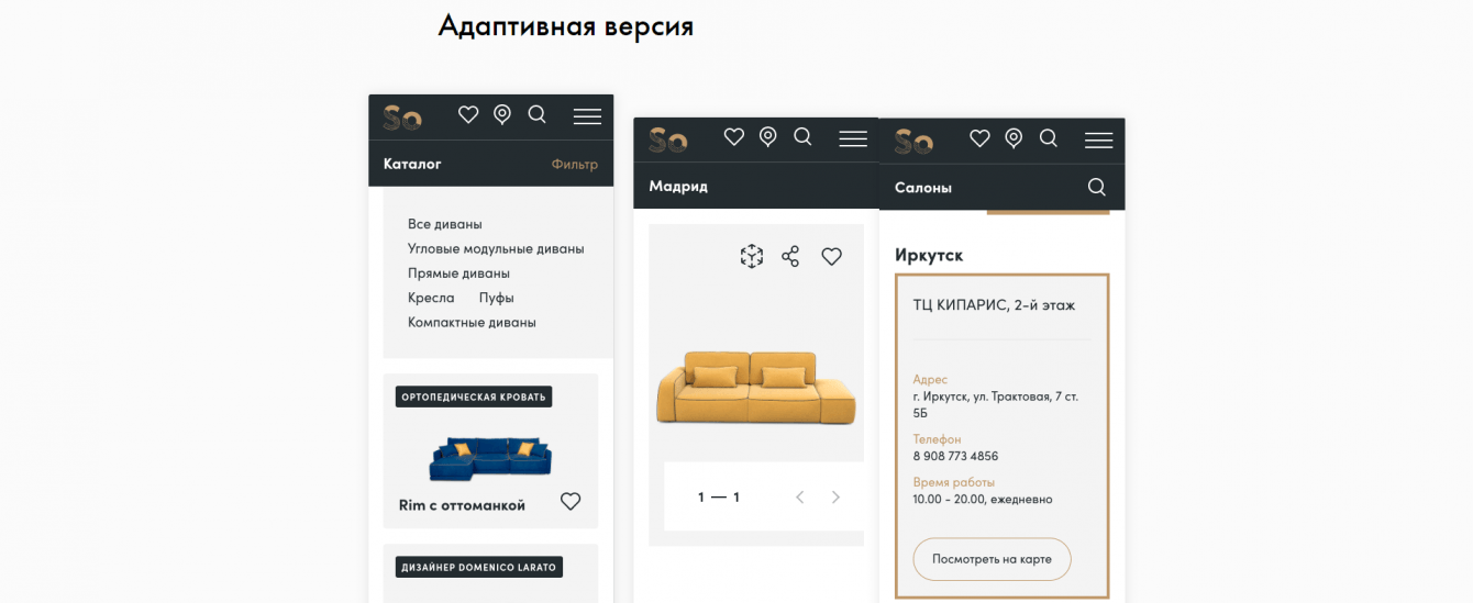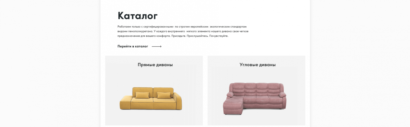Разработали сайт нового бренда мягкой мебели от сибирской фабрики с большой историей. Сайт включает в себя информацию о компании, каталог товаров, детали каждого товара, возможность фильтрации и контактную информацию.
