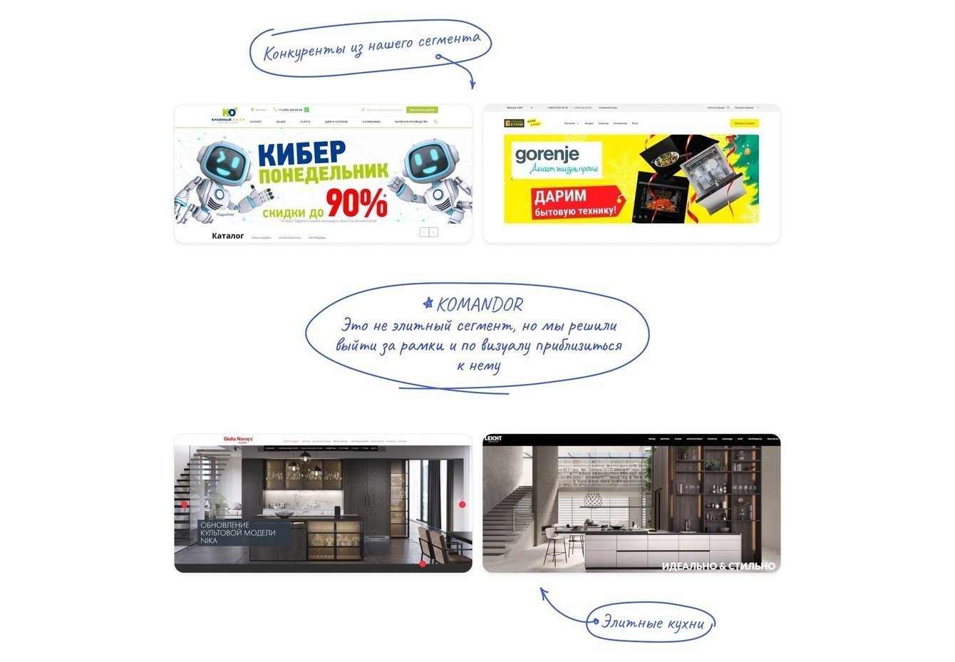 - Анализе конкурентов из сегментов эконом, выше среднего и элитных кухонь.