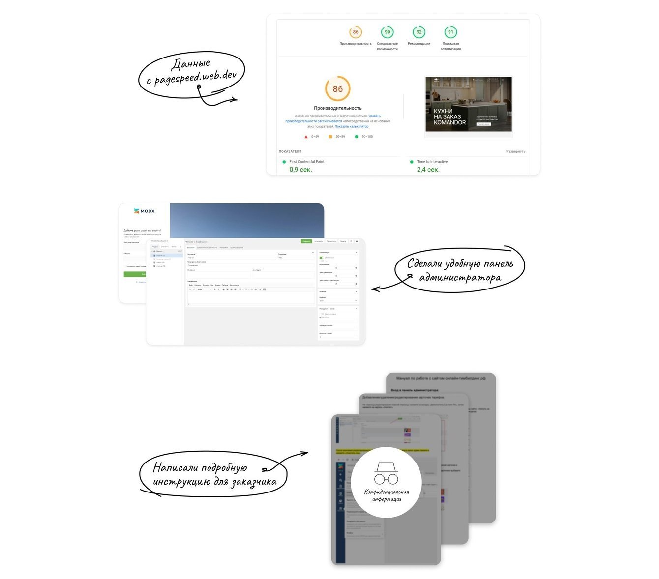 - Оптимизация скорости загрузки сайта и написание инструкции по работе с админ-панелью.