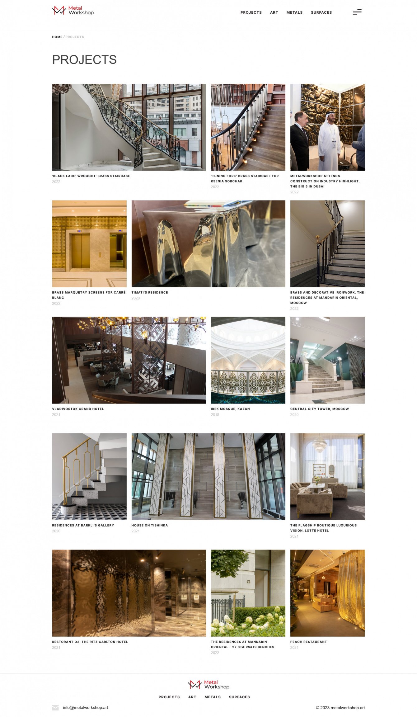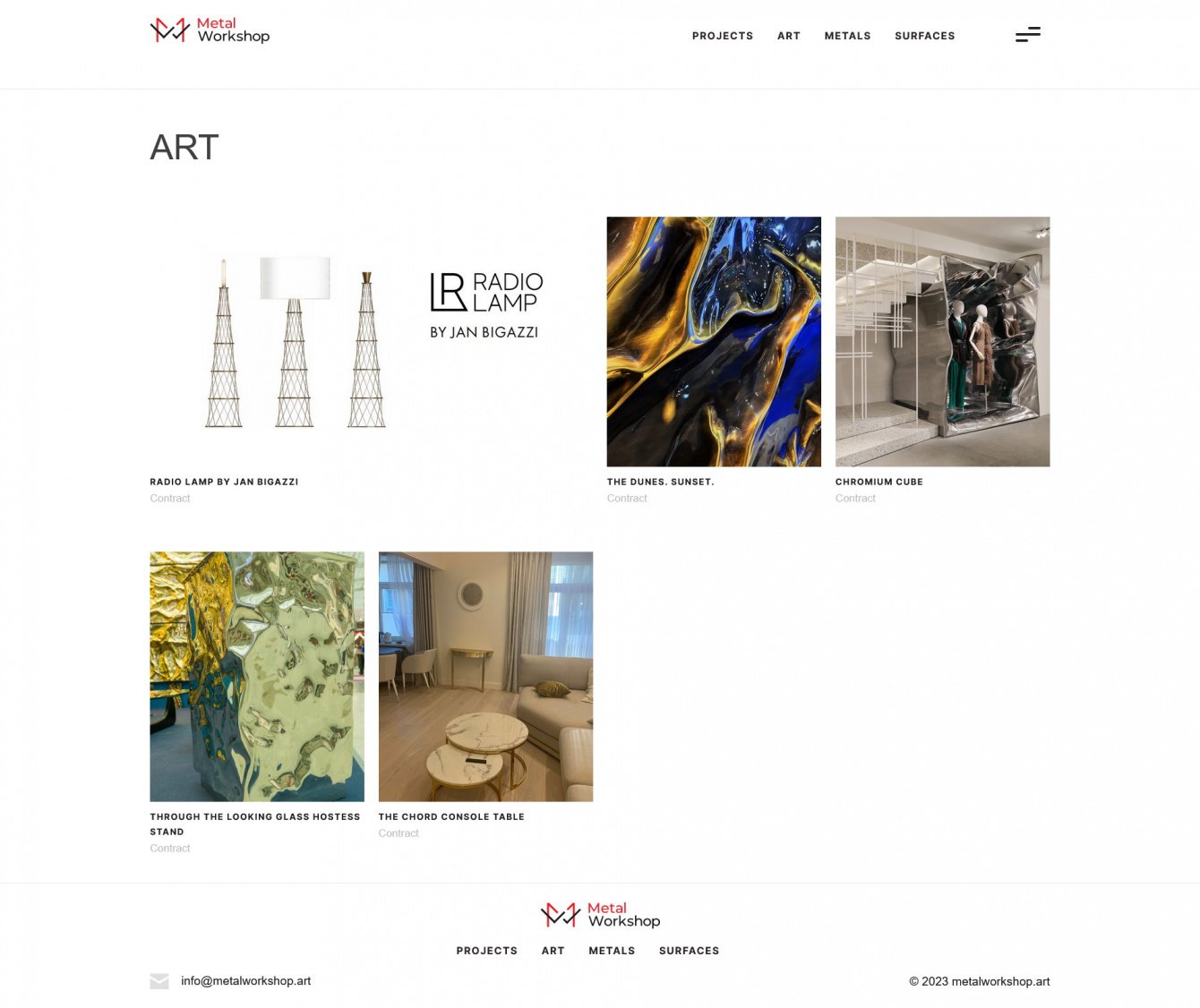Клиент: Международная компания, которая создает исключительные архитектурные и художественные объекты из металла для элитных особняков, магазинов, офисов, гостиниц, кафе и ресторанов и участвует в выставках современного искусства и дизайна.