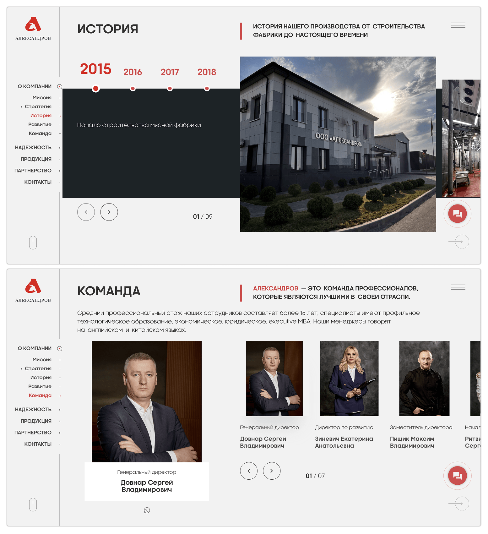 Главная функция сайта — представить продукцию и сформировать положительный имидж компании. Поэтому дизайн в этом проекте был на первом месте.