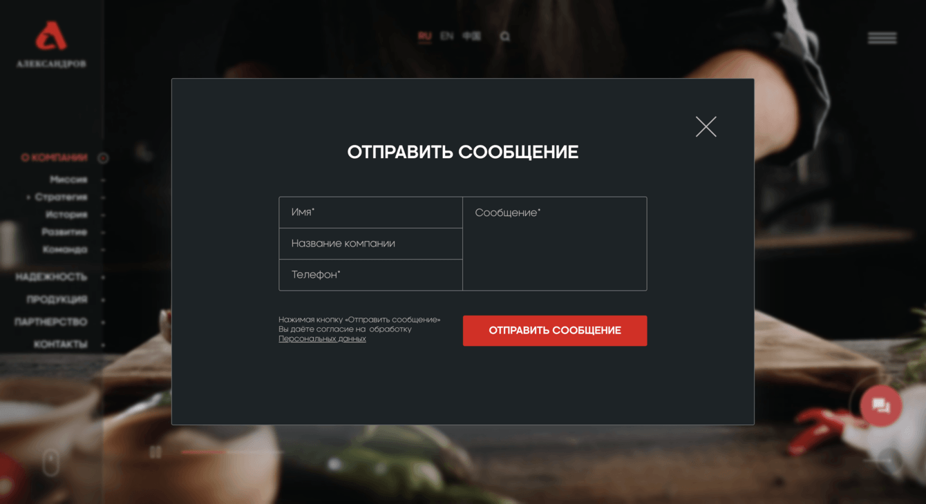 До нашего сотрудничества у мясокомбината не было сайта, а работа с клиентами велась через белорусские B2B-маркетплейсы. Сейчас в приоритетах компании расширение на китайский рынок, и для этого необходим сайт-визитка.
