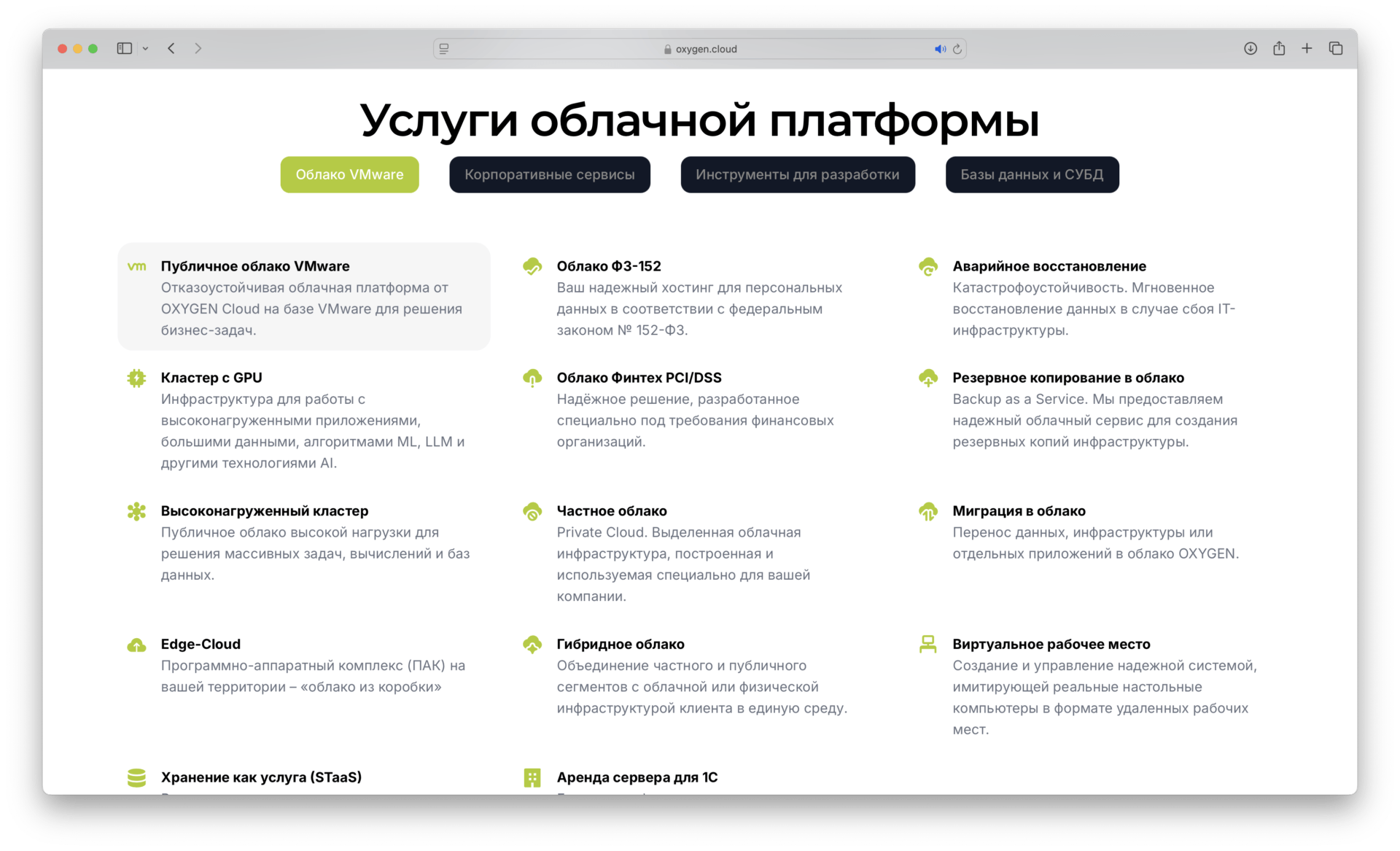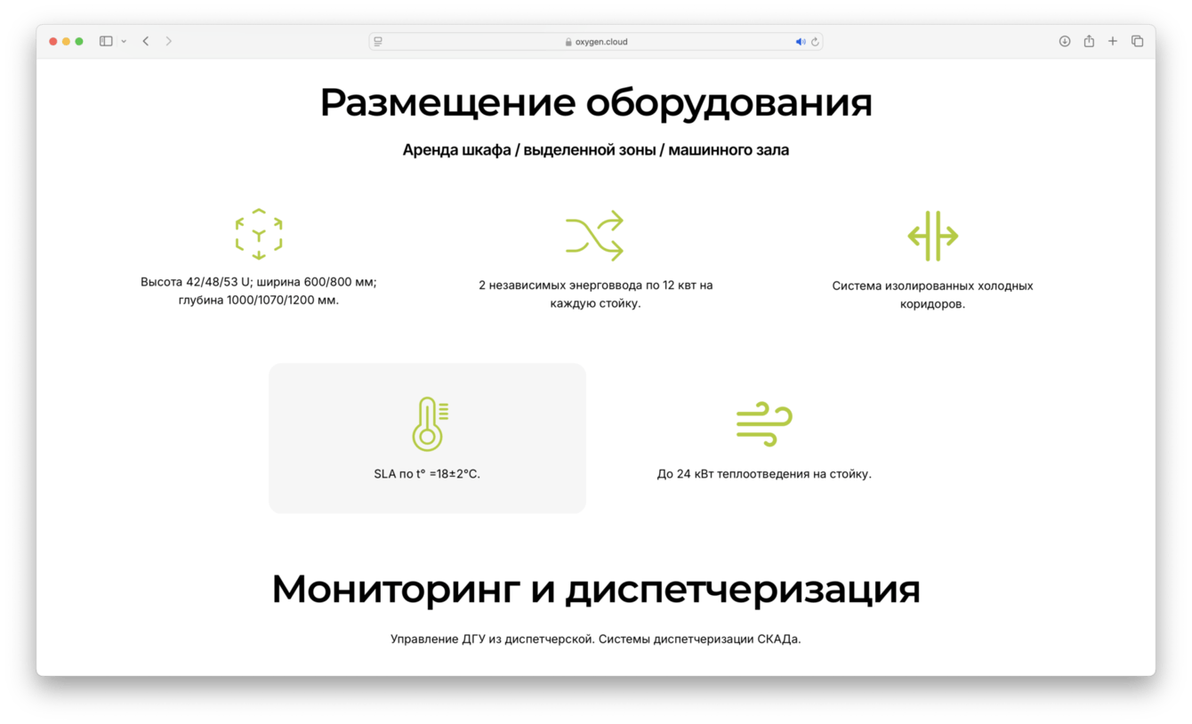 Разработка корпоративного сайта с подробным описанием услуг компании. Широкий спектр услуг облачного провайдера, где каждая услуга на сайте представлена в виде посадочной промо-страницы страницы, с подробной информацией, интерактивом, анимацией. Сайт снабжен всеми необходимыми инструментами для быстрой обратной связи.