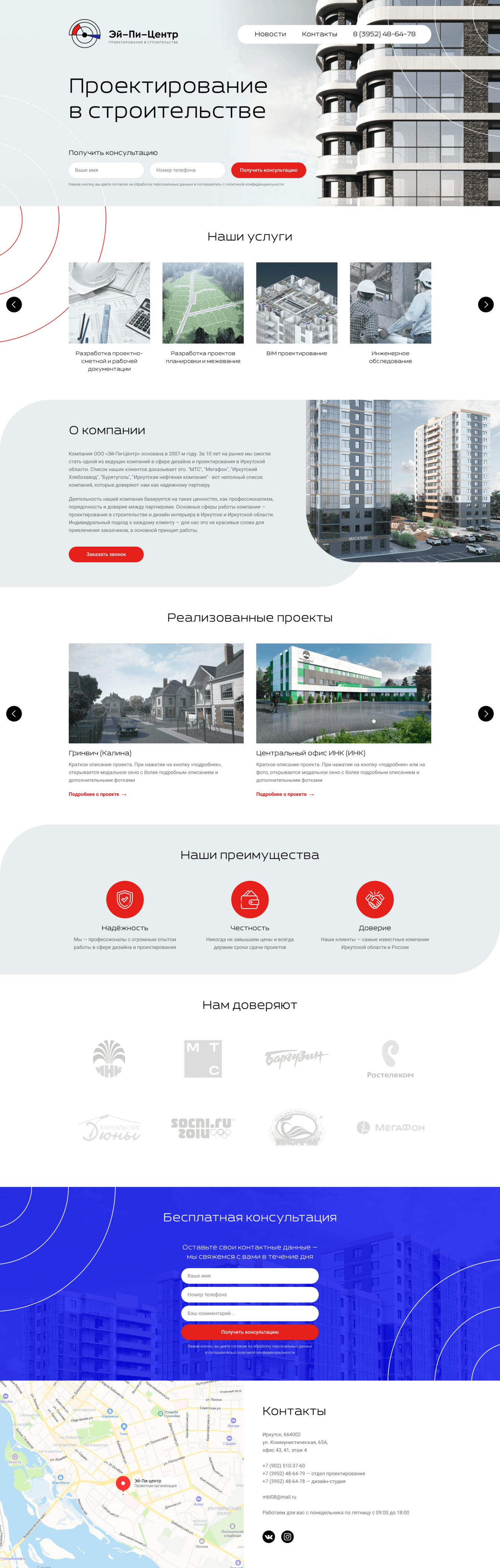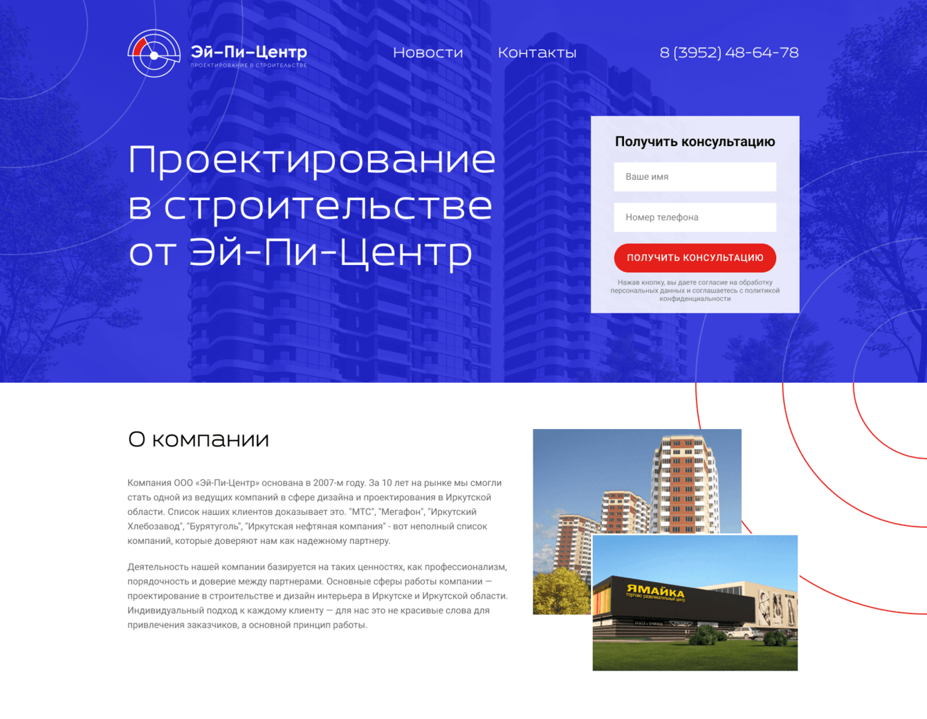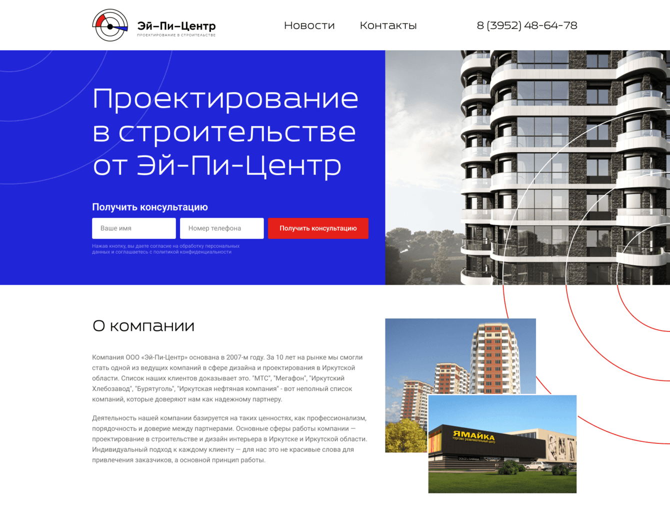 Компания ООО «Эй-Пи-Центр» основана в 2007-м году. За 16 лет на рынке они стать одной из ведущих компаний в сфере дизайна и проектирования в Иркутской области. Список клиентов впечатляет - «МТС», «Мегафон», «Иркутский Хлебозавод», «Бурятуголь», «Иркутская нефтяная компания».