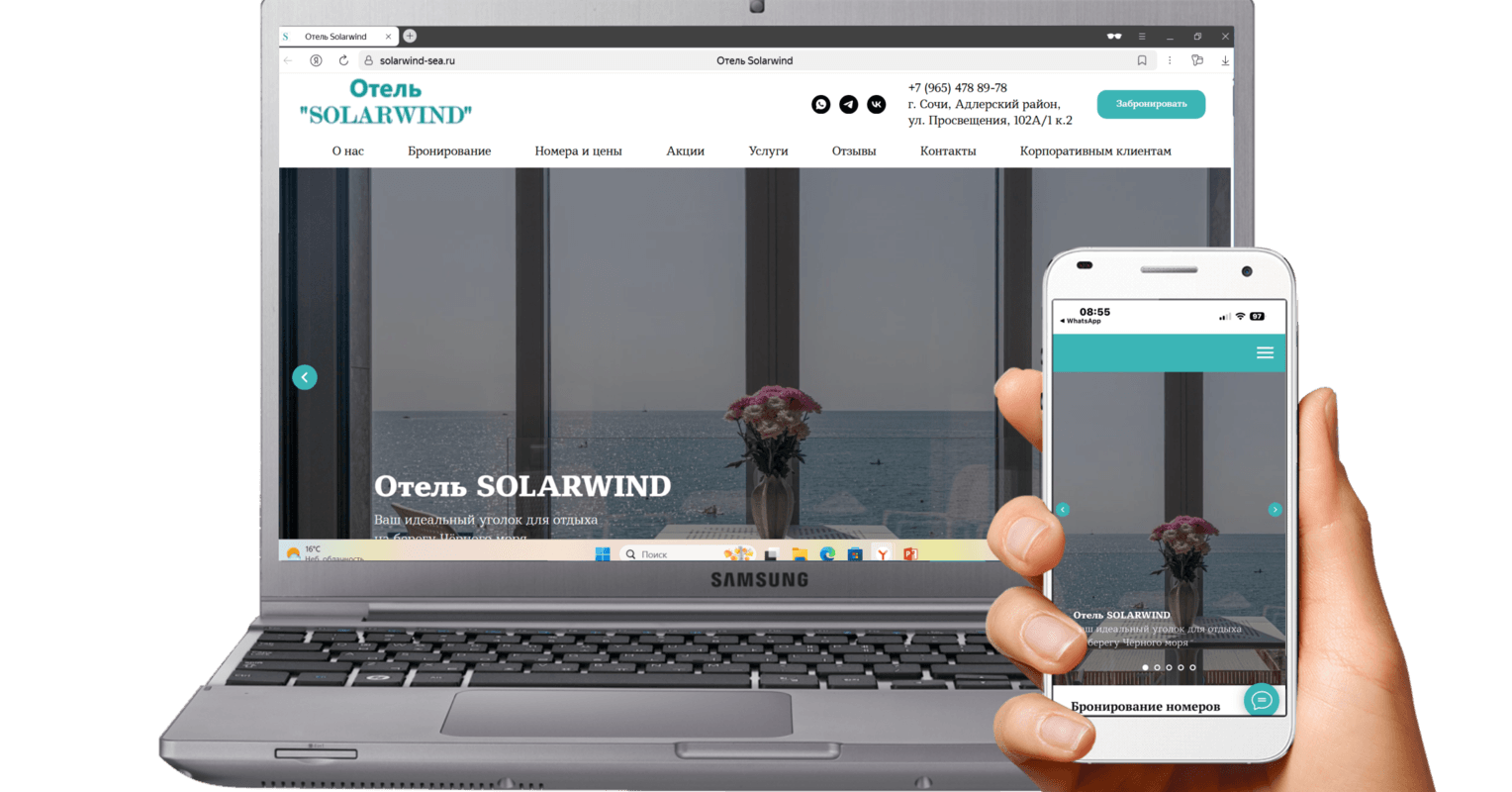 Разработка сайта для отеля в Адлере: перенос с устаревшей платформы на платформу Tilda Publishing, доработка дизайна и модернизация функционала. Разработка дизайна, наполнение, подключение домена и сертификата безопасности, подключение форм обратной связи, Яндекс Метрики, привязка кода агрегатора, начальная настройка сео, подключение Яндекс Вебмастера, публикация.