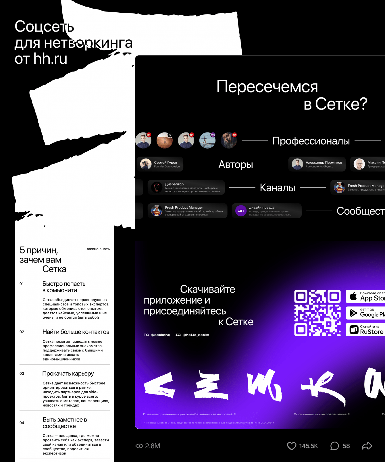 Сетка — это новая социальная сеть от hh.ru, которая помогает легко строить профессиональные связи и открывать новые карьерные возможности. Одной из киллер фич являются сетки — объединения людей по общему профессиональному опыту.