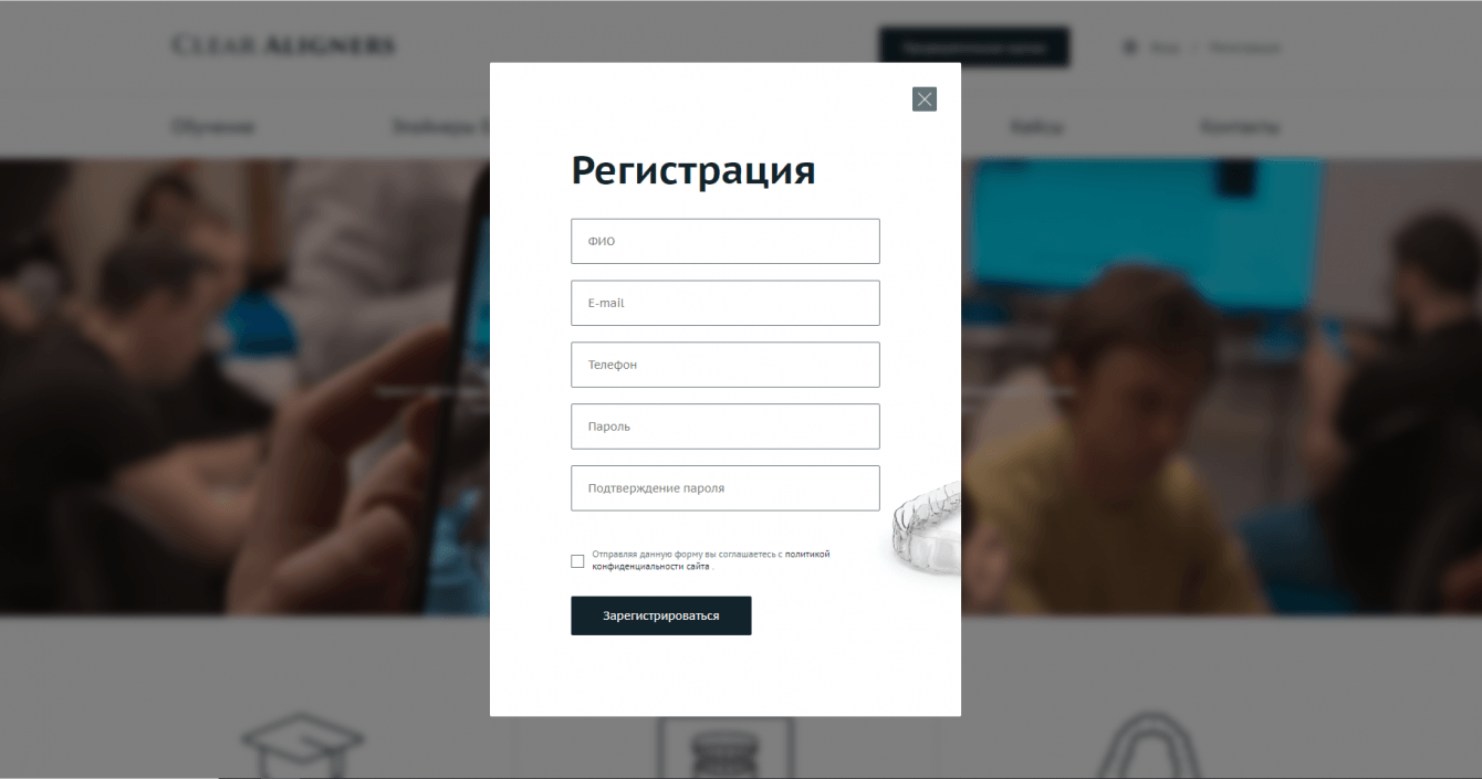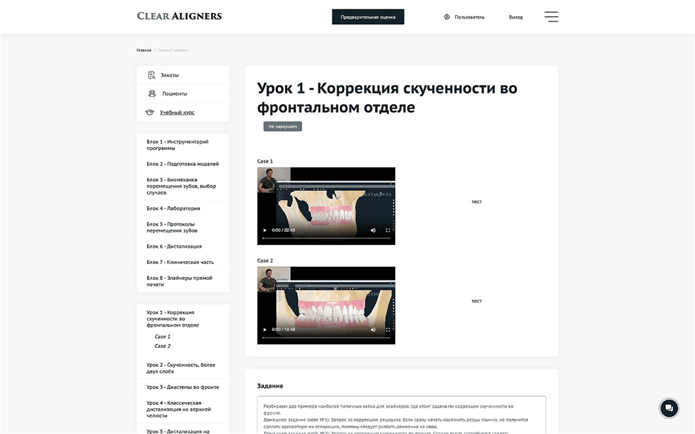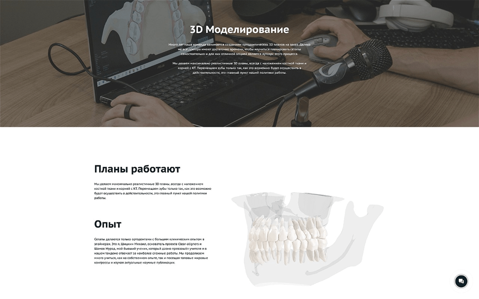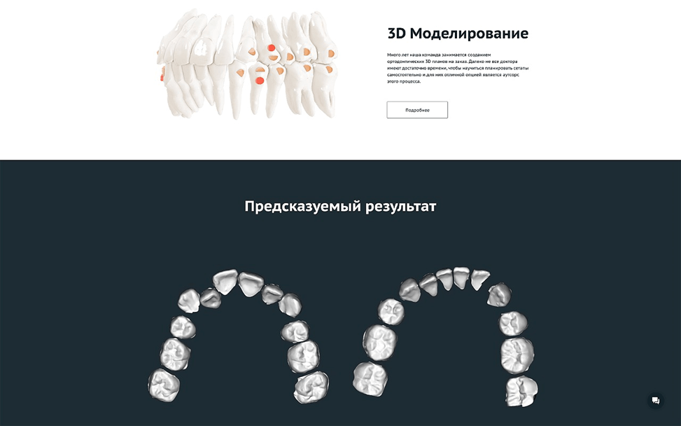 Задача: создать полноценный сайт, чтобы быть наравне с конкурентами, повысить комфорт своих клиентов, пользующимися услугами Clear-aligners, и иметь площадку для учебного курса. Сложность выполнения проекта в том, что сайт должен быть на двух языках - русский и английский. Вместе с сайтом задача состояла в переходе работы менеджеров от блокнотов и мессенджеров в комплексную CRM систему.