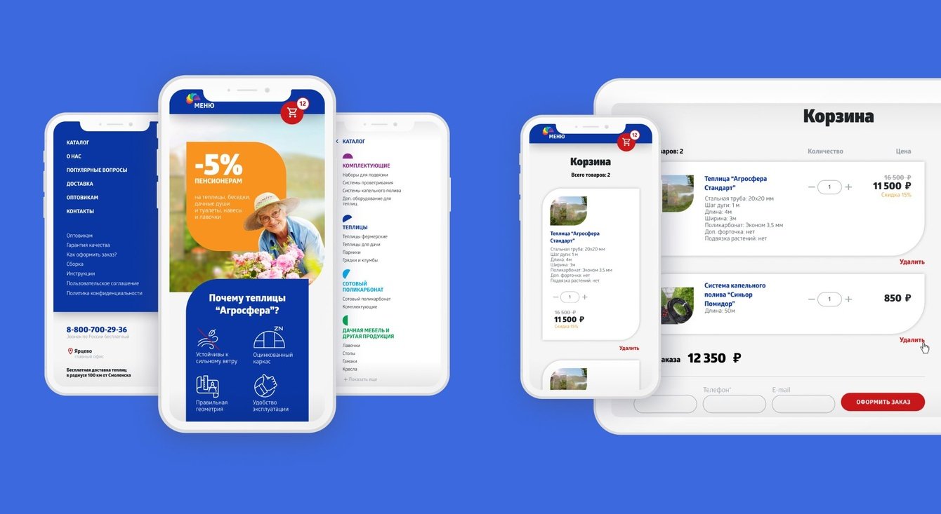 При разработке мы опирались прежде всего на целевую аудиторию заказчика: люди возрастной группы от 40 лет. Поэтому было необходимо разработать простую навигацию и доходчиво рассказать о товаре.