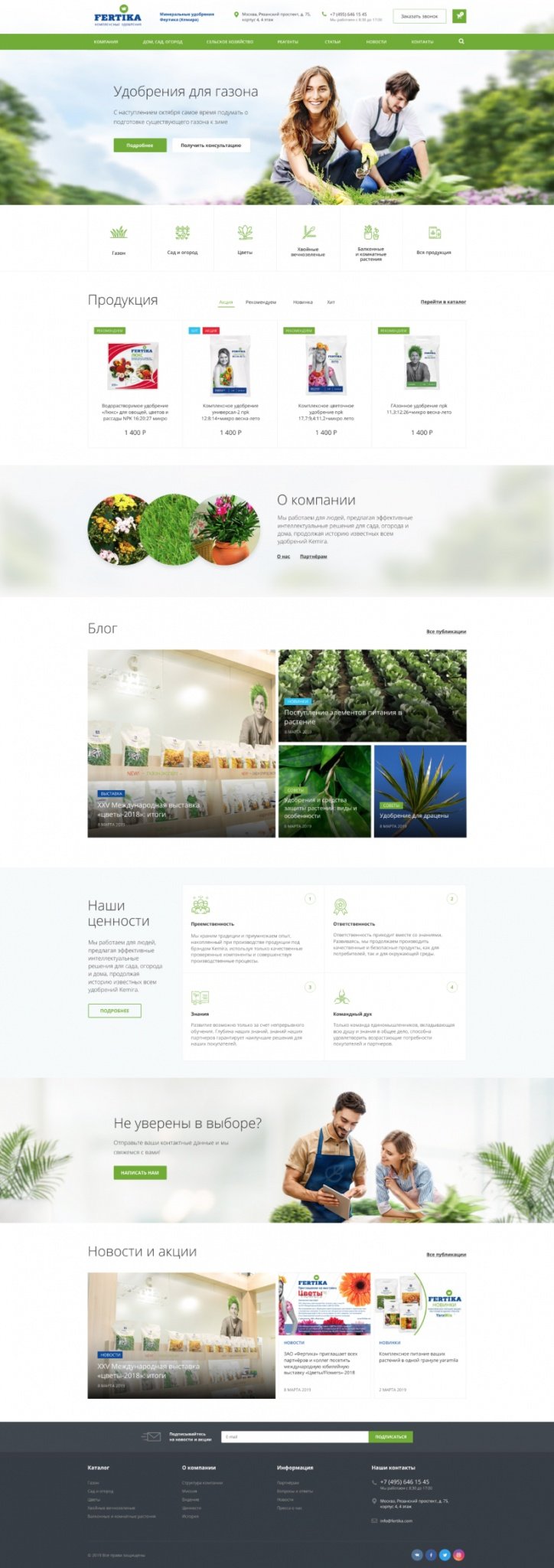 Основная задача - расширить функционал сайта до полноценного интернет-магазина с возможностью продавать продукцию компании онлайн как оптовым, так и розничным покупателям. А также сохранить существующий каталог по услугам растениеводства, который было решено сделать более детализированным и понятным для пользователей. Важные нюансы - эко-дизайн с доработкой под бренд-бук компании, быстрая загрузка на всех платформах, адаптивная версия.