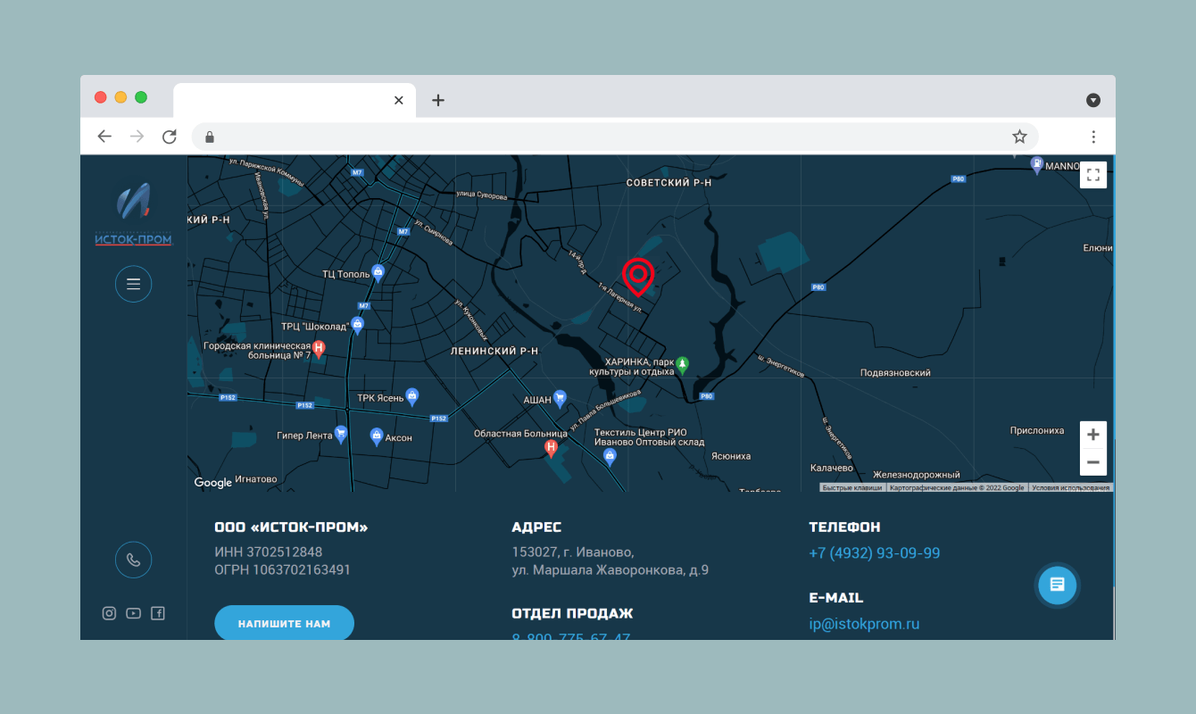 Предыдущий сайт производственного альянса «Исток-Пром» был направлен исключительно на интернет-продажи, но практически не презентовал саму компанию. Клиенты, попадая на сайт, получали посредственное представление о всех возможностях компании, видах продукции и предоставляемых услугах. Нам требовалось: