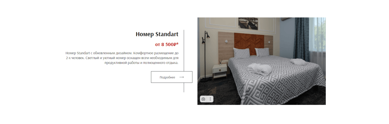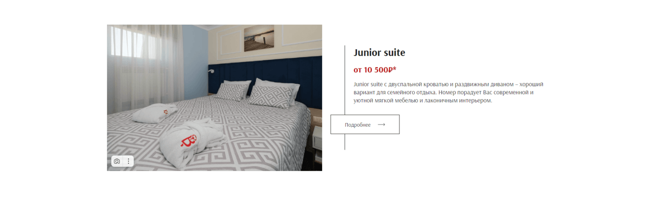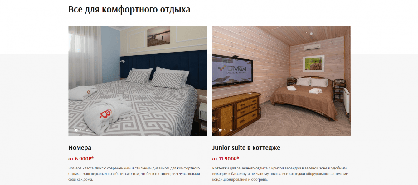 - Интерактивность и функциональность: Мы добавили на сайт интерактивные элементы, такие как галереи изображений с номерами, видео на главной странице и формы обратной связи для бронирования номеров, чтобы посетители могли легко ознакомиться с услугами комплекса и связаться с его представителями.