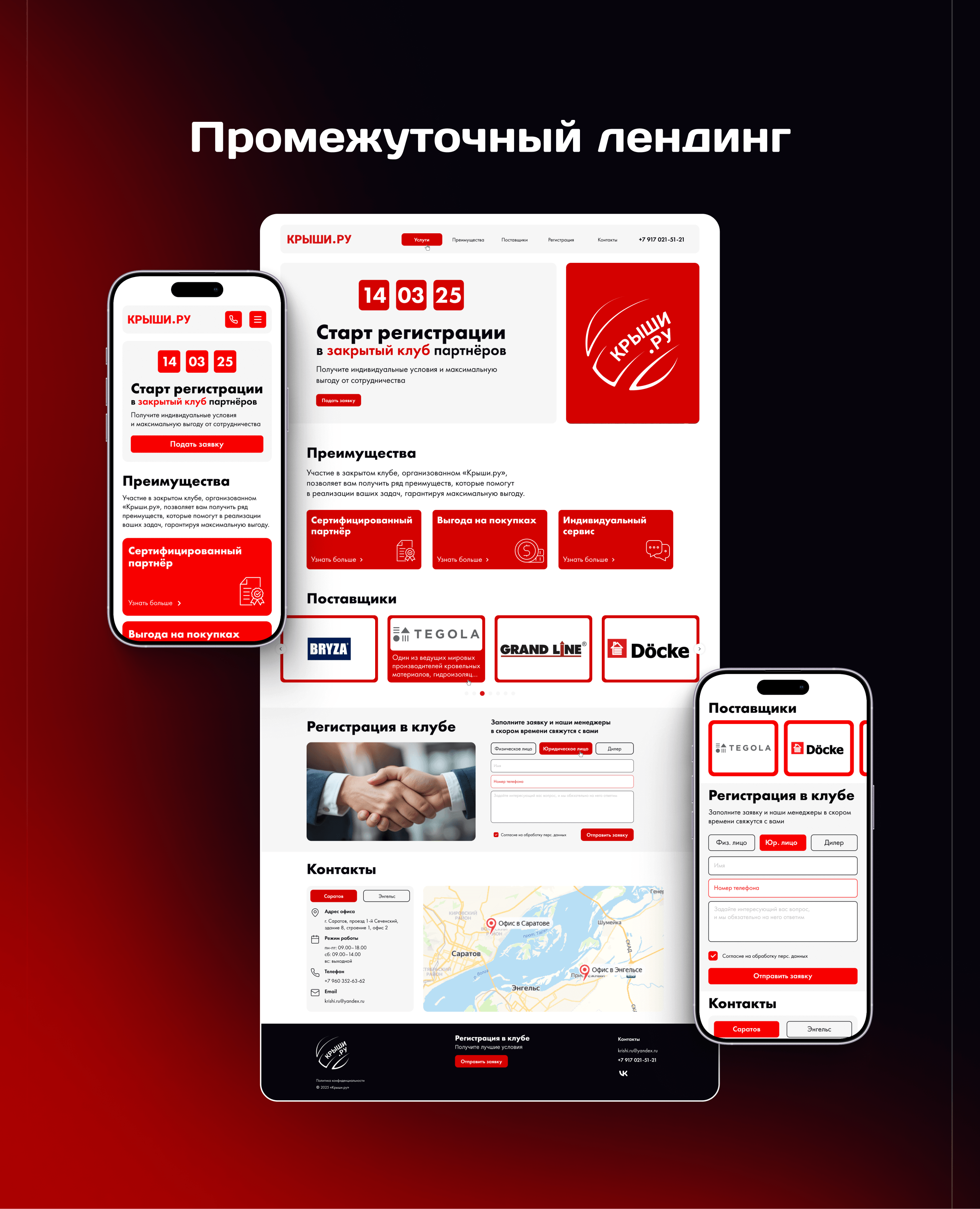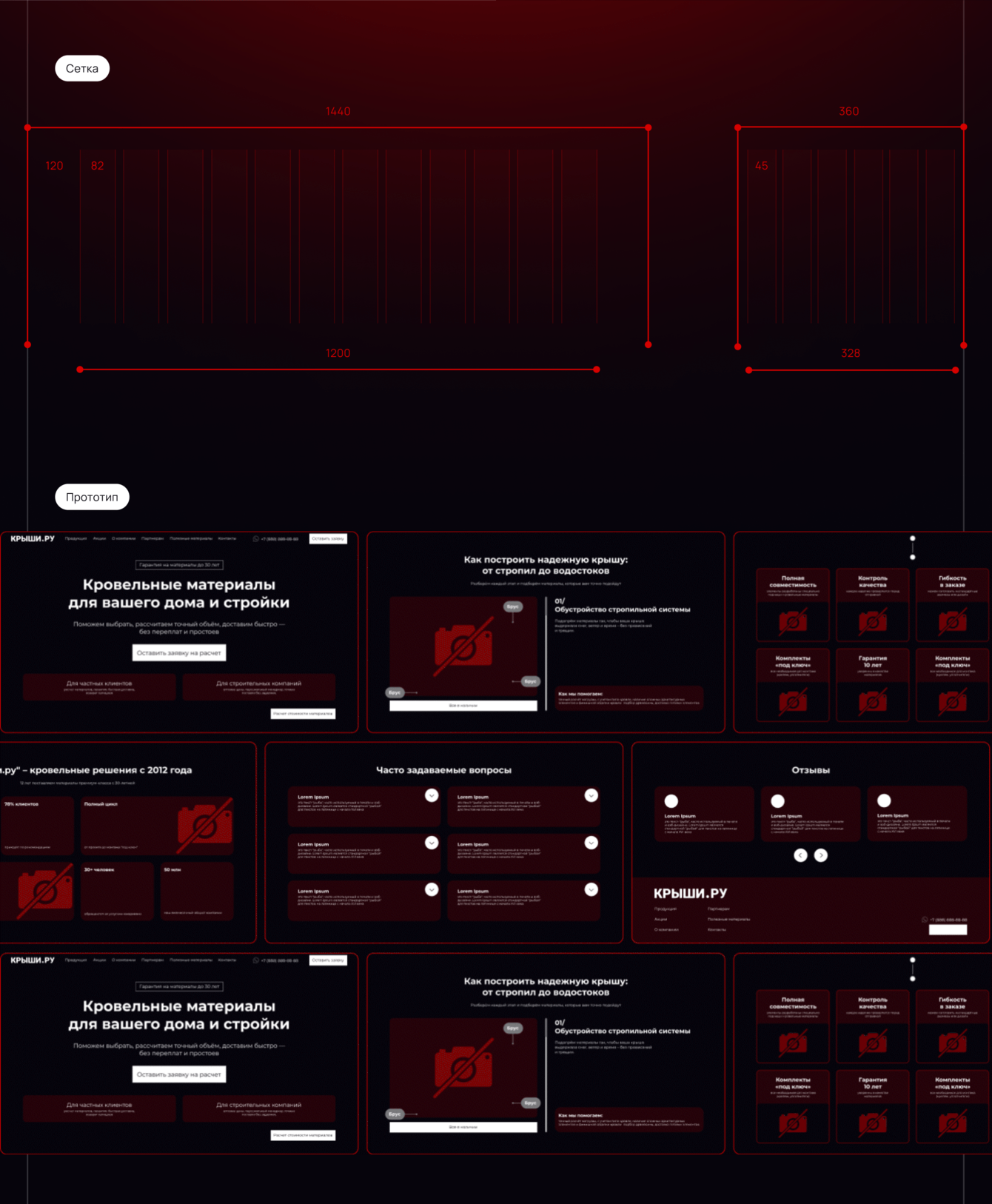 - Проработка стилистики и формирование прототипа сайта с акцентом на удобный маршрут пользователя к заявке и возможности масштабирования;
