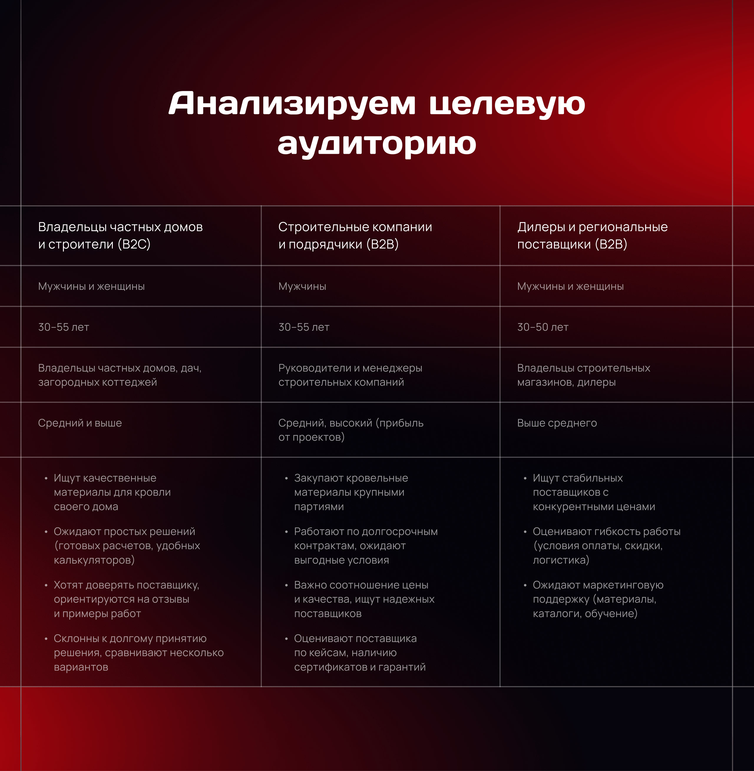 Аудитория собиралась на основе базы знаний самого клиента и желаемой аудитории, на основе которой было собрано три основных портрета: