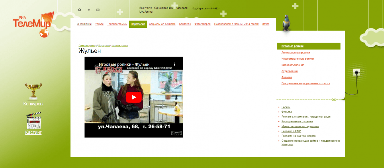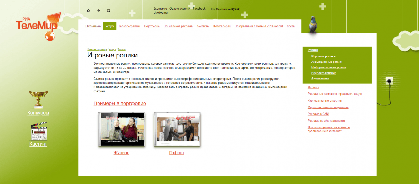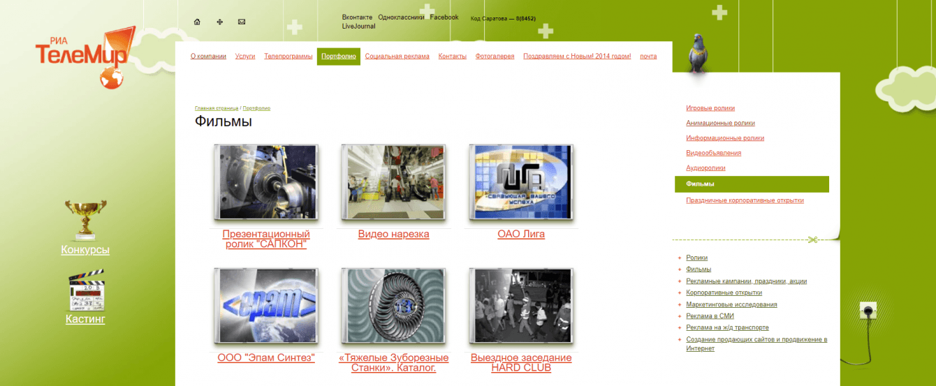 3. Разработка и программирование (портфолио видеороликов, форма обратной связи, фотогалерея, онлайн прием заявок на кастинг на кинопробы, блог).