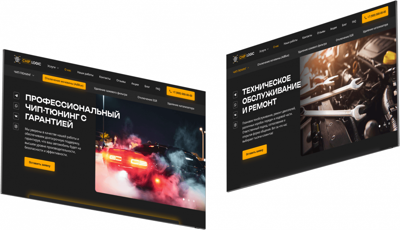 Создание веб-сайта для сервиса чип тюнинга "Chip Logic". Компания специализируется на улучшении производительности автомобилей, охватывая более 8 тысяч моделей.